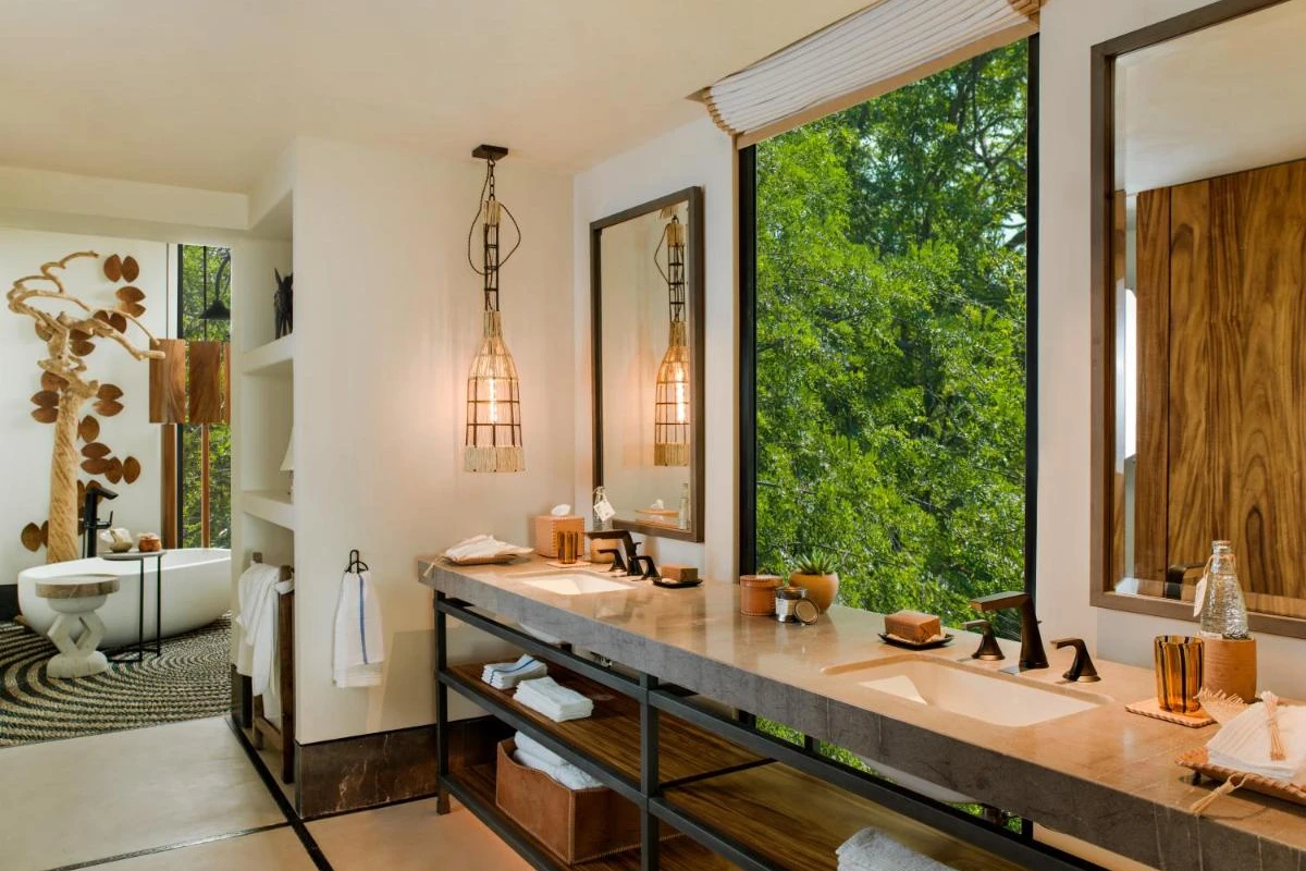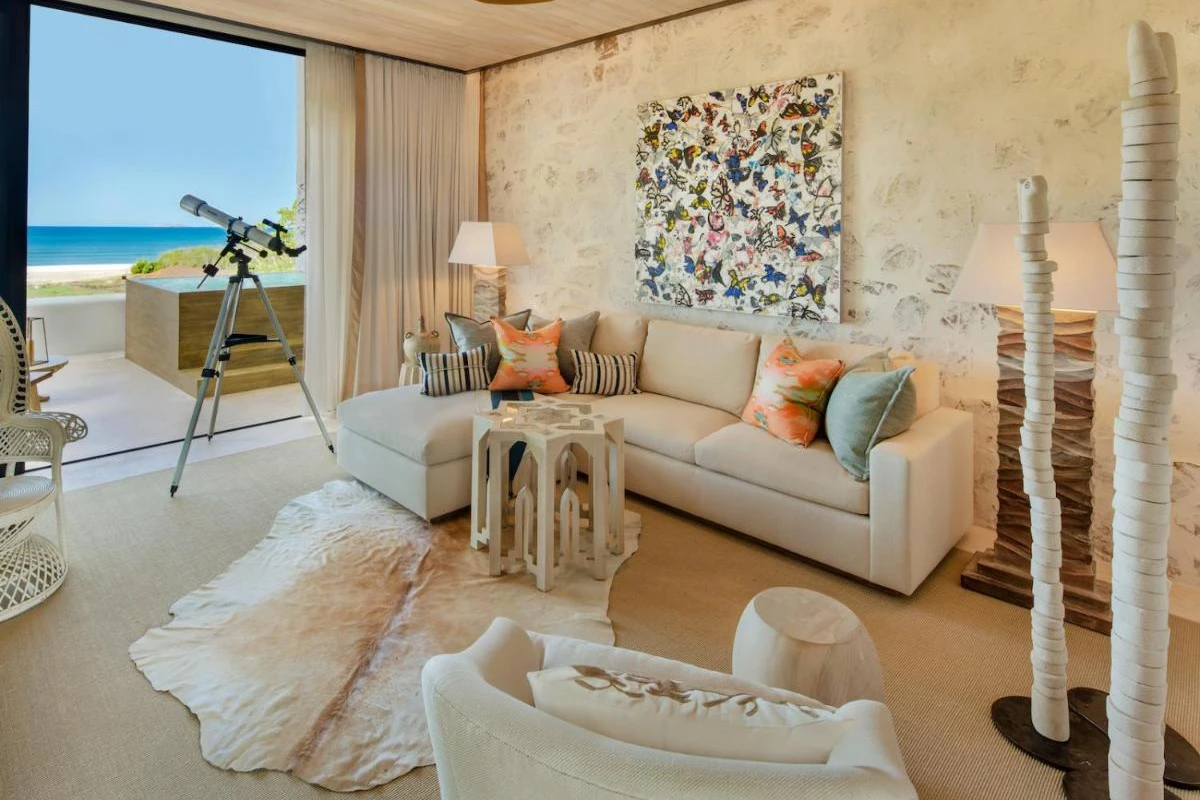 The 59 studios, casitas, and suites, plus 30 villas, pulse with modern sophistication, featuring natural wood furnishings, artisanal textiles, flat-screen TVs, minibars, and plush bathrooms with premium toiletries. Private terraces unveil sweeping ocean or lush garden views, crafting an intimate sanctuary for couples or discerning travellers. Complimentary Wi-Fi ensures seamless connectivity in this Auberge Resorts Collection gem.