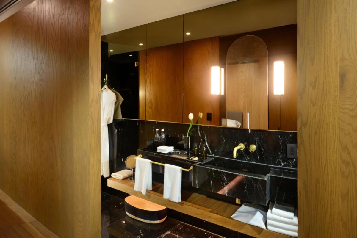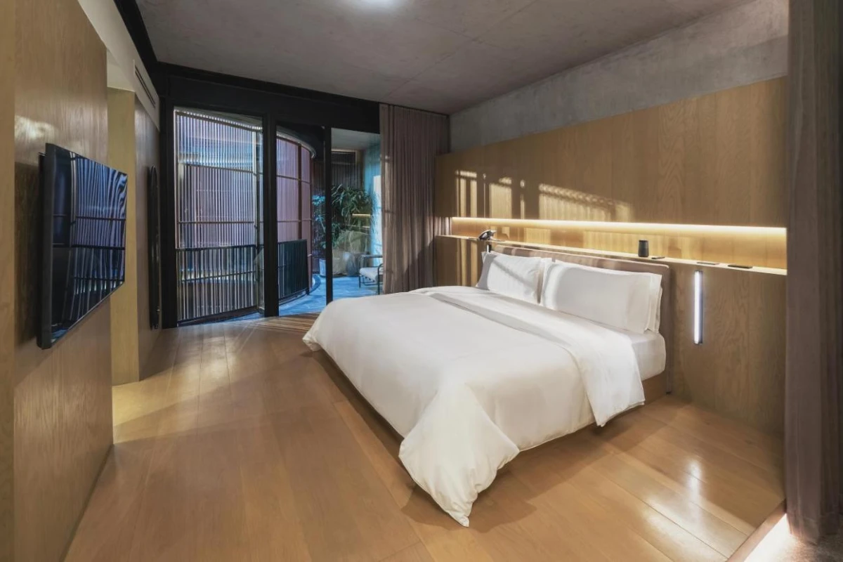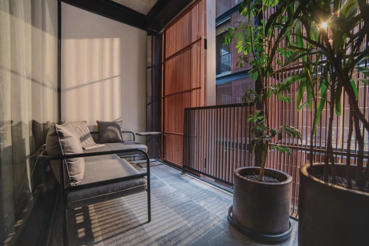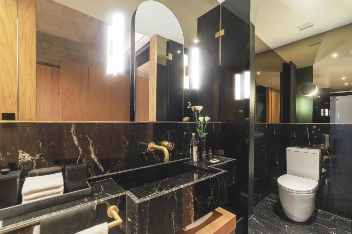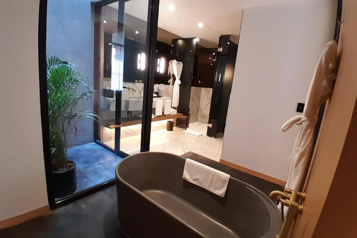The 50 contemporary suites radiate bespoke elegance, featuring 600-thread-count linens, flat-screen TVs, coffee machines, locally curated minibars, safety deposit boxes, and marble-floored bathrooms with wide rain showers and Aromaria toiletries. Private balconies overlook a striking indoor mosaic-style patio, an artistic centrepiece, crafting an intimate haven for couples, business travellers, or cultural explorers. Complimentary Wi-Fi ensures seamless connectivity in this sophisticated retreat.