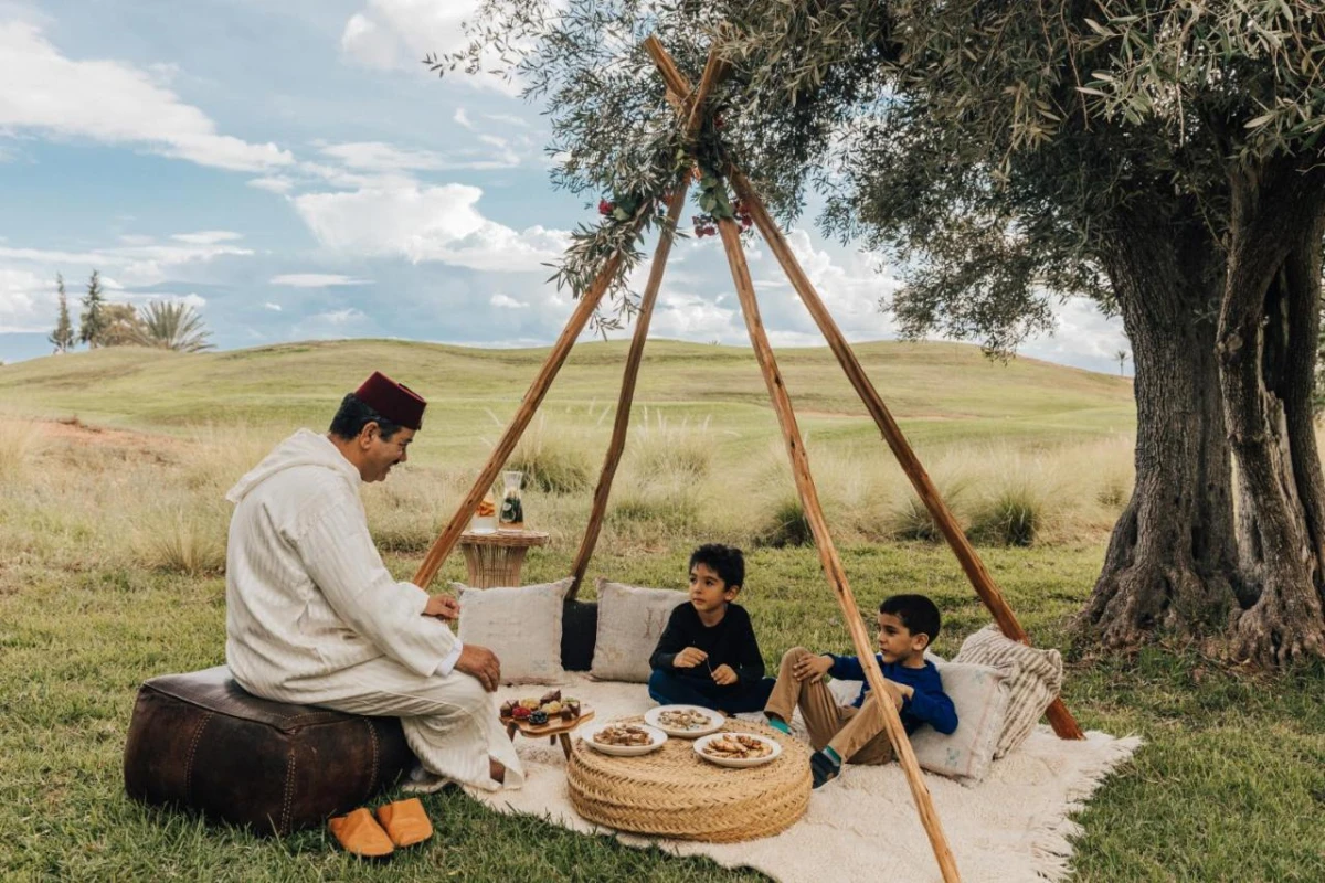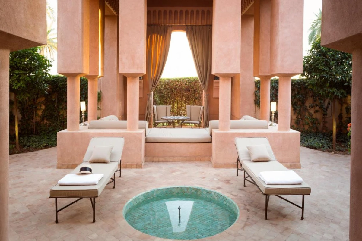 The spa offers wellness treatments from visiting experts, while a fitness centre, table tennis, and tennis support active routines. Complimentary bikes and nearby golf at Amelkis course, plus family programs, explore Marrakech's vibrant culture, with a concierge arranging tours to the Boucharouite Museum, weaving in the city's lively pulse.