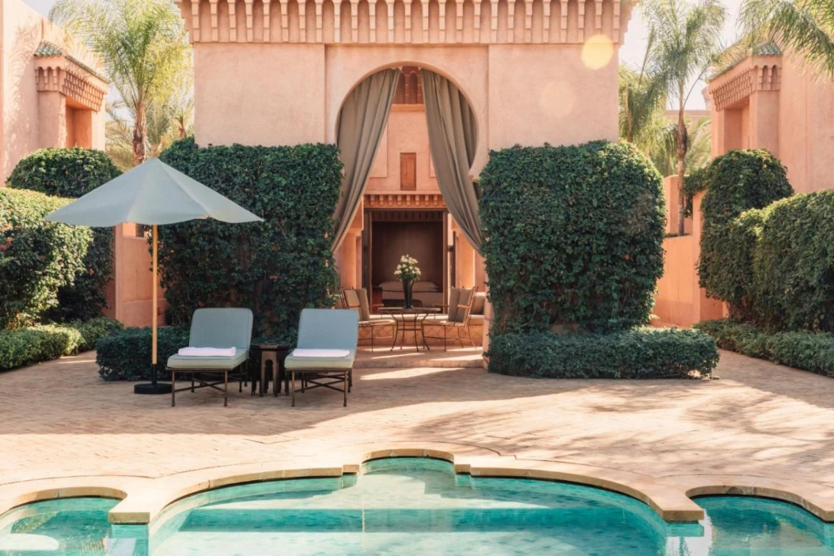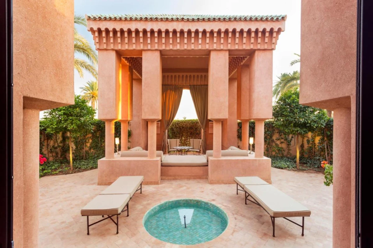 Amanjena Resort, a 5-star retreat in Marrakech, Morocco, sits on 15 acres of lush greenery, offering a serene escape near Bahia Palace and Marrakech Royal Golf Club.