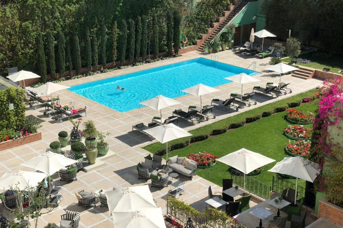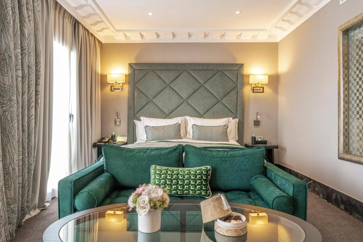 The 68 rooms and suites, spread across four floors, feature air-conditioned spaces, flat-screen TVs, minibars, and private bathrooms with premium toiletries. Adorned with marquetry furniture and velvet accents, many rooms open to views of a lush garden or carrara marble fountain, creating a restful sanctuary for couples or travellers. An outdoor pool adds a refreshing touch.