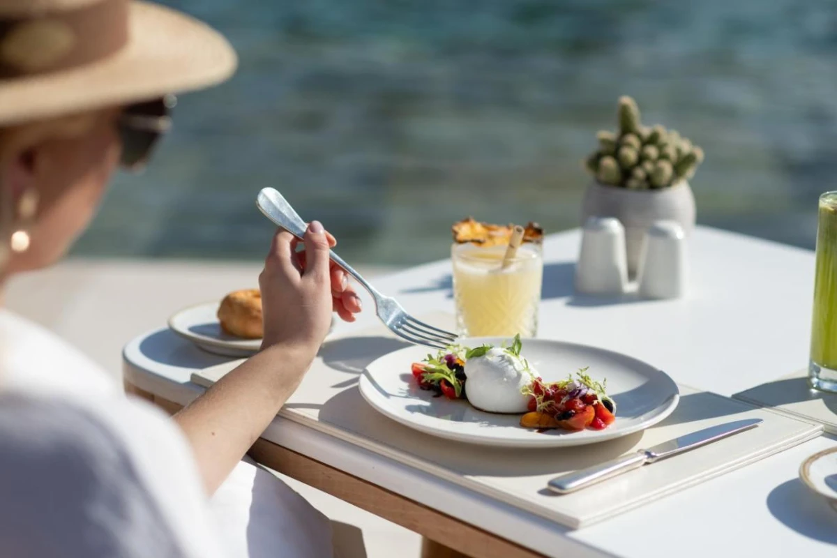 Multiple restaurants serve breakfasts with fresh fruits, blending Moroccan and international cuisine, while bars craft cocktails, accompanied by soft regional melodies, fostering a warm, inviting atmosphere.