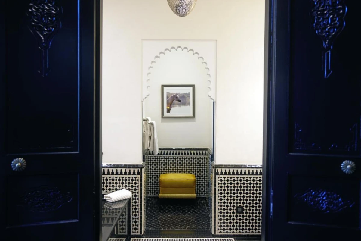 The 55 rooms, suites, and 5 private riads feature air-conditioned spaces, flat-screen TVs, minibars, and private bathrooms with hot tubs, showers, and premium toiletries. Large terraces or private pools with butler service open to views of Arabian horse stables or gardens, creating a restful sanctuary for couples or families. Three outdoor pools, including an 80-meter heated pool, add a refreshing touch.