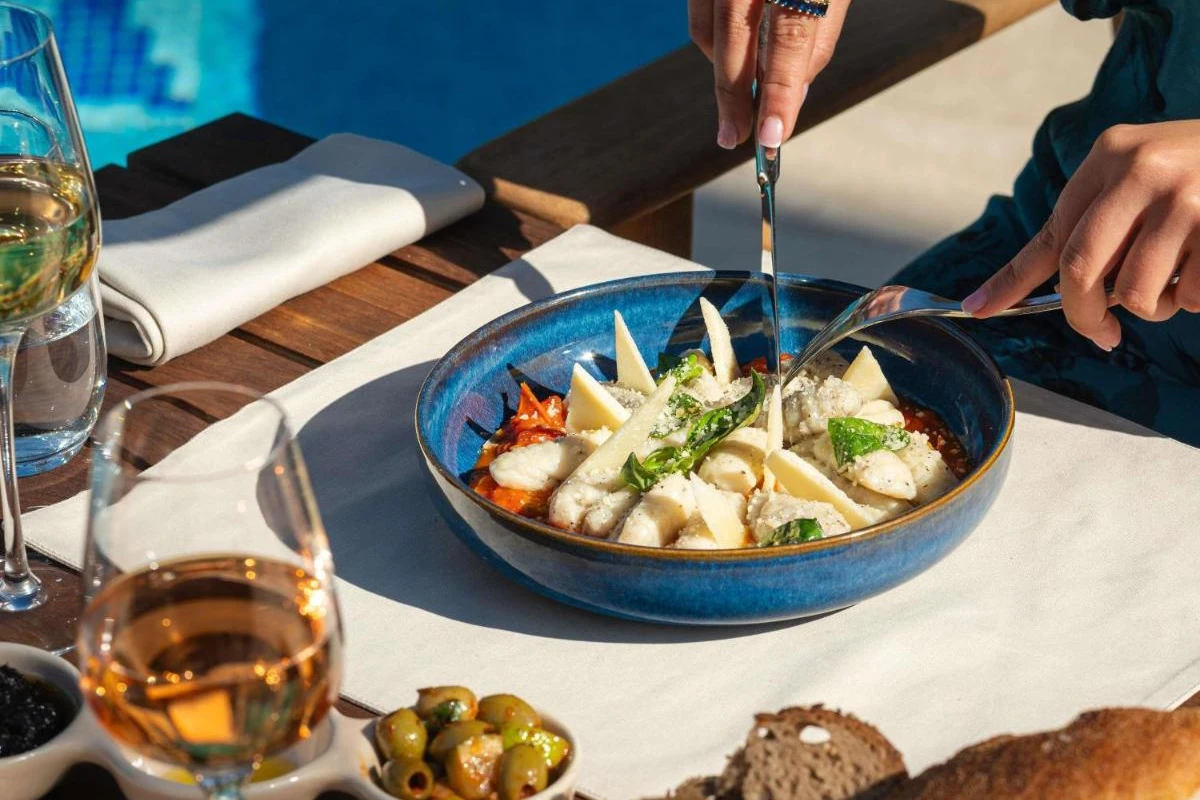 Three restaurants, including L'Orangerie with its Atlas-facing terrace, serve breakfasts with fresh fruits, olive oil-inspired dishes, and Moroccan cuisine. Palais Darkum bar offers international teas and cocktails, paired with soft oud melodies, crafting an intimate, welcoming vibe.