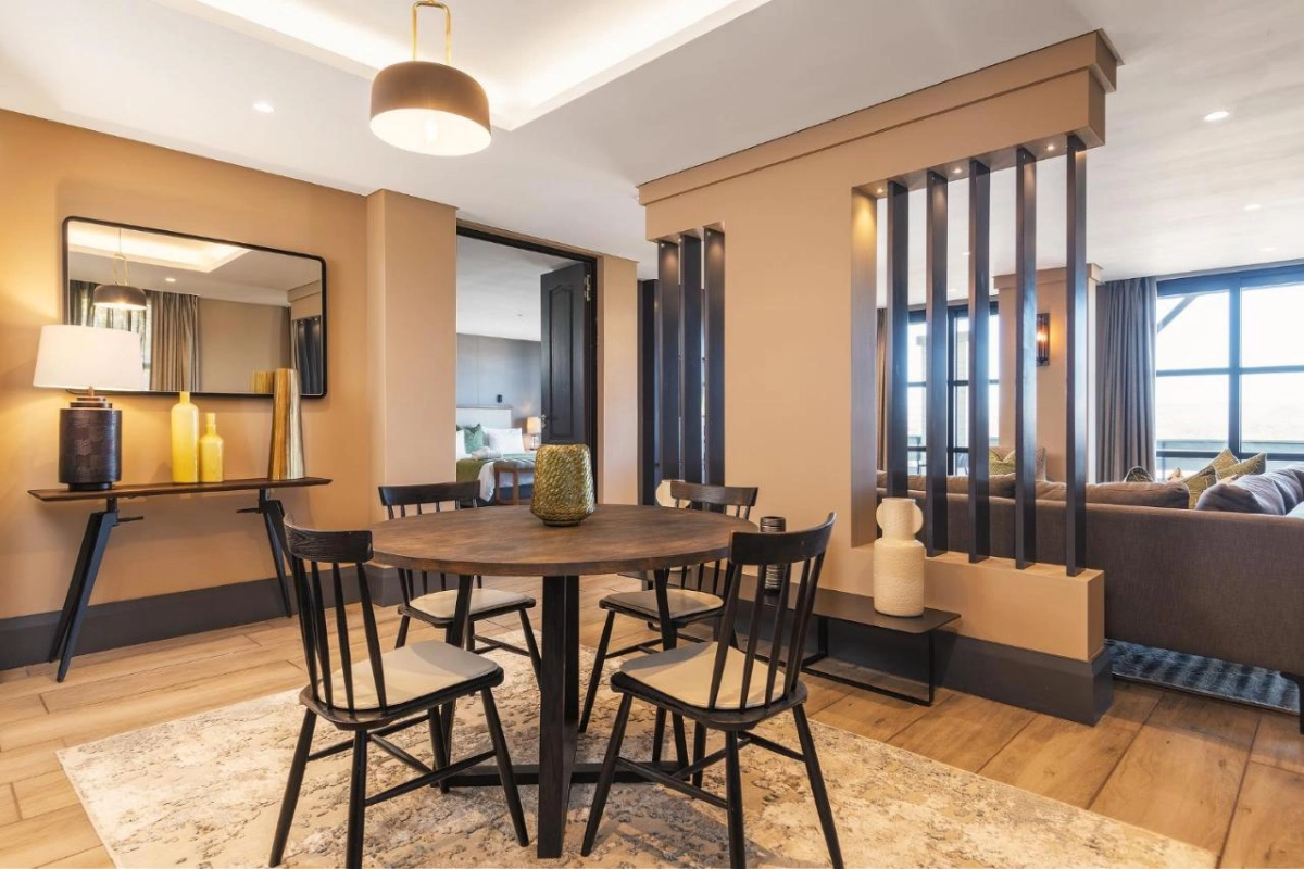 The 46 rooms unfold with rustic elegance, featuring air-conditioned comfort, flat-screen TVs, minibars, and sleek bathrooms with premium toiletries. Select units offer terraces or balconies with mountain or garden views, creating tranquil havens where attentive staff ensure thoughtful details, from plush linens to warm welcomes, fostering a sense of belonging amid Namibia's pastoral beauty.
