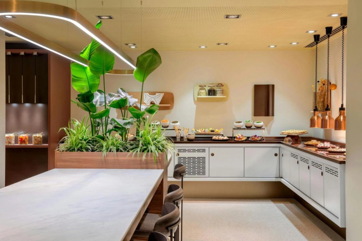 With 396 stylish rooms designed by renowned Dutch designer Piet Boon, this landmark property showcases spacious layouts, light-toned interiors, and versatile seating areas tailored for both relaxation and productivity. Each room features plush bedding, smart technology, and Nespresso machines, while Executive Rooms grant access to the exclusive Executive Lounge, where complimentary drinks and evening bites elevate the experience. The design reflects a seamless fusion of Dutch elegance and modern functionality, creating an inviting ambiance.