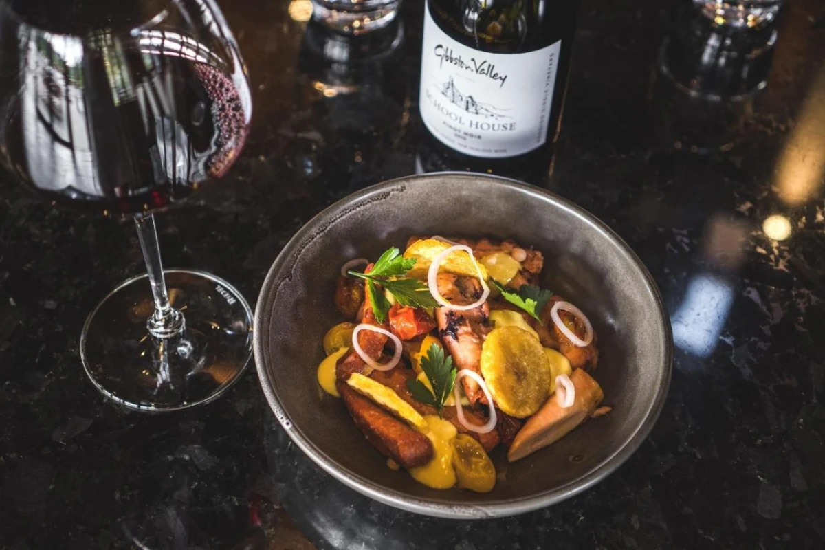 The onsite restaurant offers an à la carte menu with gluten-free and vegan options, crafted from organic, sustainably produced ingredients grown in the chef's garden or sourced from local artisan suppliers, perfectly paired with award-winning Gibbston Valley Wines. Guests can unwind at the exclusive Day Spa, relax in the conservatory, media room, or wine cellar, or enjoy tailored experiential packages like wine tastings, vineyard tours, cave dinners, private picnics, luxury cycle tours, or hiking on the 1000-acre Gibbston Valley Station. The five-star concierge team curates bespoke experiences, from Queenstown adventures to intimate events.