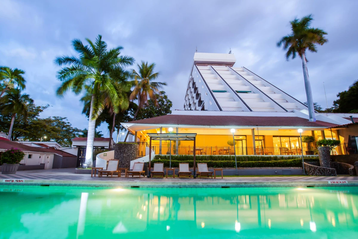 Crowne Plaza Managua, a radiant four-star haven in the heart of Managua's vibrant capital, enchants with its Mayan pyramid-inspired design, weaving modern luxury and Nicaragua's exotic allure just steps from major corporate offices like Pricesmart and Banco Ficohsa.