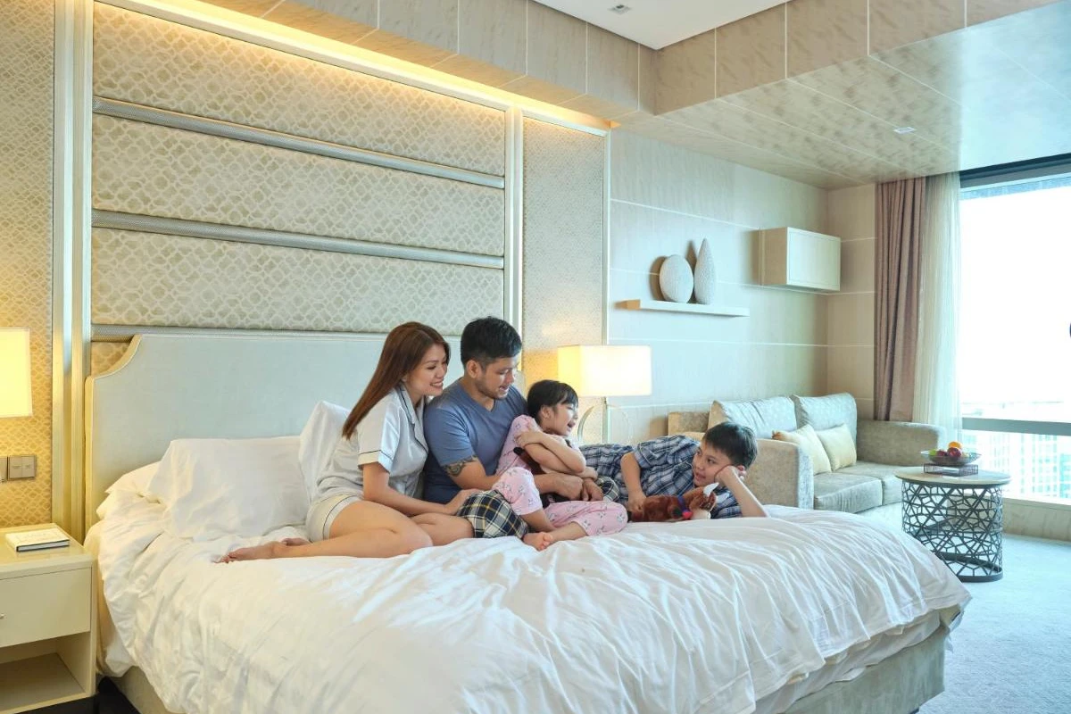 The High Street Cafe and Lounge tempt with international selections and freshly baked pastries alongside a daily buffet breakfast that nourishes with global flavours, while Canton Road crafts authentic Chinese dishes like delicate dim sum. Raging Bull Chophouse & Bar grills premium steaks à la carte, Raging Bull Burgers delivers hearty American classics, and Samba weaves Peruvian specialties into vibrant plates, with in-room dining available for quiet evenings. Two outdoor swimming pools provide a relaxing urban oasis with city panoramas, where the pool bar serves chilled drinks, and the on-site fitness centre alongside a sauna restores balance. Spa at Kerry Sports offers signature massages to melt away tensions, and the Kid's Club sparks gentle adventures for little ones at an extra charge.