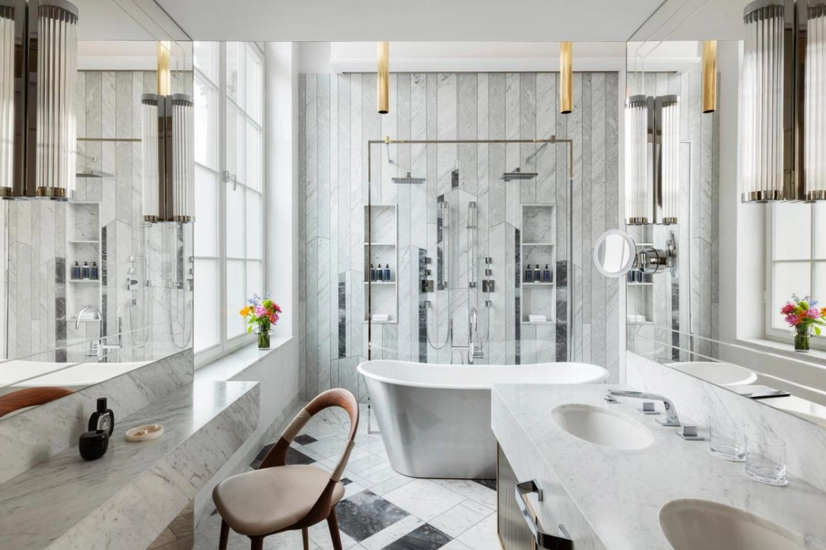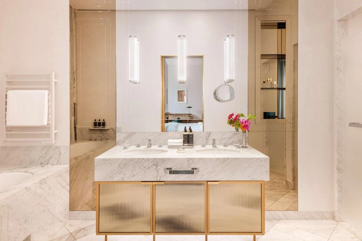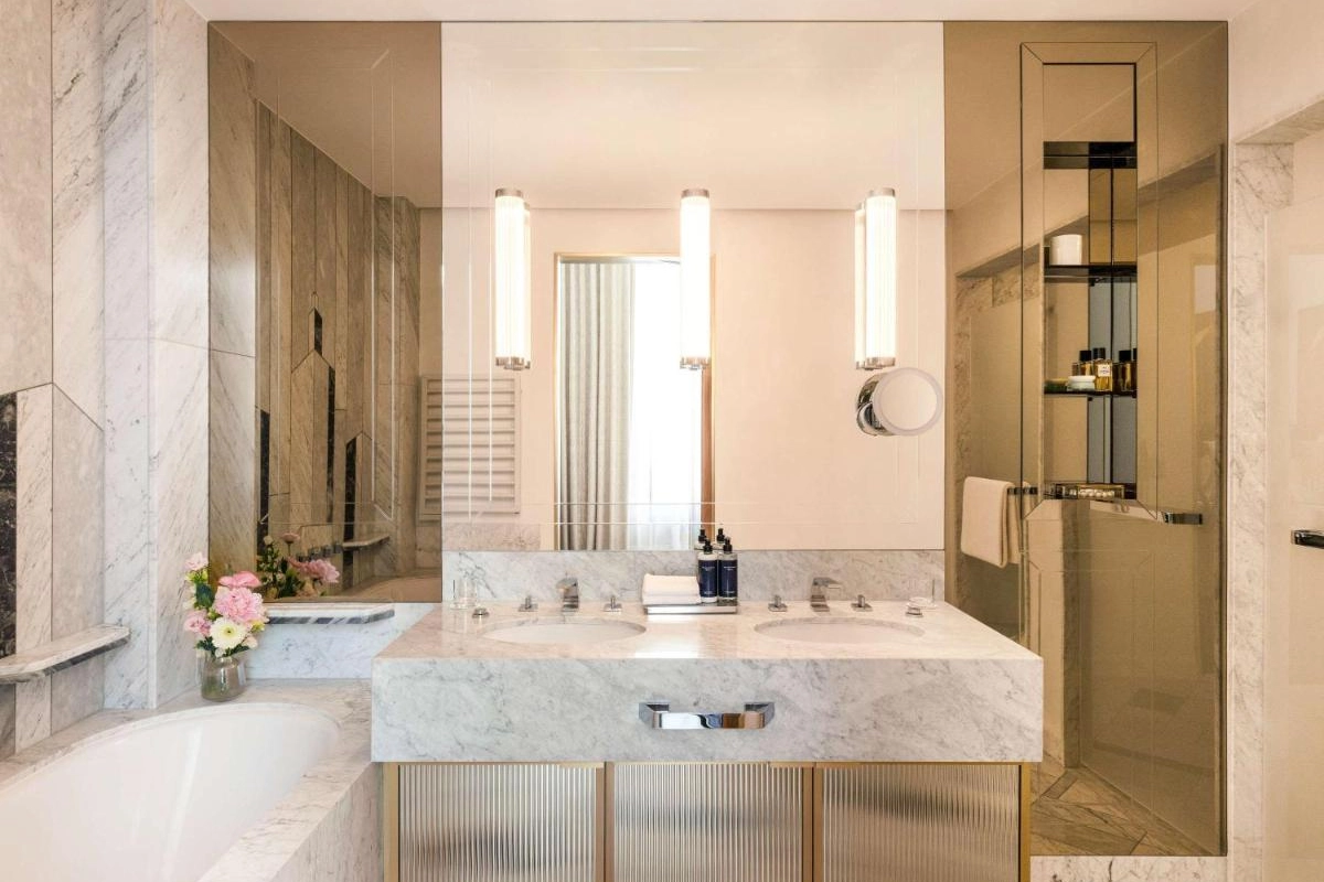 The 106 elegant rooms and suites exude modern luxury, featuring air-conditioned comfort, high-definition LED TVs with satellite channels, premium audio systems, and private bathrooms with premium toiletries, many offering Warsaw skyline views. Oak floors, curated contemporary art by Anda Rottenberg and Barbara Piwowarska, and corner libraries with multilingual books add thoughtful sophistication. The Raffles Spa indulges with an indoor pool, multiple saunas, steam rooms, and six treatment rooms for bespoke facial and body therapies, while a state-of-the-art gym energizes guests.