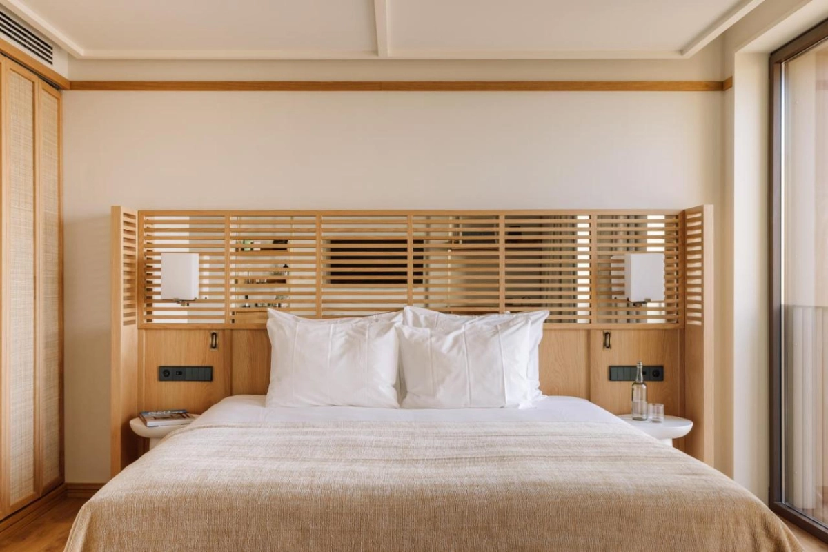 The 30 rooms, from cozy to the Surfer's Room with bunk beds, unfold with serene minimalism, featuring air-conditioned comfort, flat-screen TVs with satellite channels, safety deposit boxes, desks, minibars, and sleek bathrooms with premium toiletries. Select rooms offer terraces or balconies with sea or mountain views, creating tranquil havens where attentive staff ensure thoughtful touches, from plush linens to warm welcomes, fostering a sense of belonging amid the ocean's rhythmic pulse.