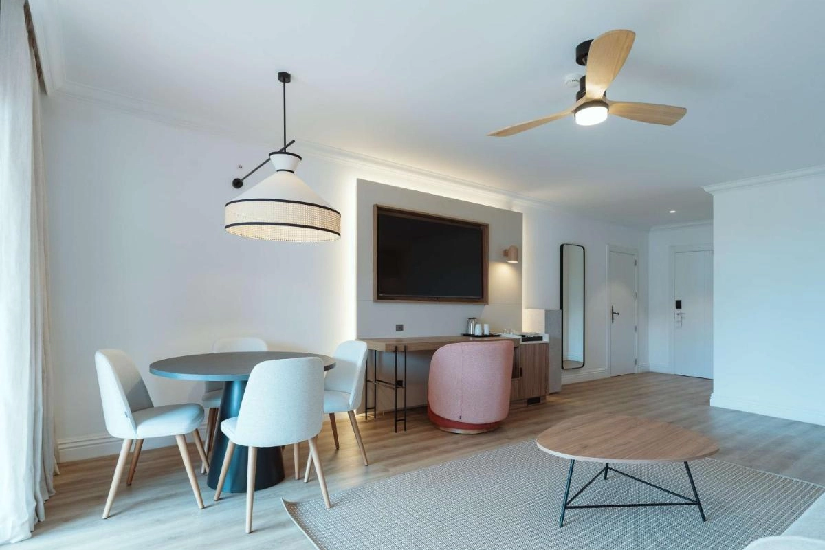 The 340 air-conditioned rooms and suites unfold with inviting ease, featuring flat-screen TVs, safety deposit boxes, minibars, and luxurious bathrooms with free toiletries. Select accommodations boast sea views, creating cheerful retreats with desks and wardrobes for relaxed island days. The expansive spa, over 900 square meters, includes a water circuit, indoor pool, sauna, steam room, and fitness centre, while four swimming pools—one adults-only and a children's splash park—sparkle amid lush gardens. The devoted staff, fluent in German, English, Spanish, and French, ensures thoughtful service from the 24-hour front desk, with entertainment staff curating lively moments.