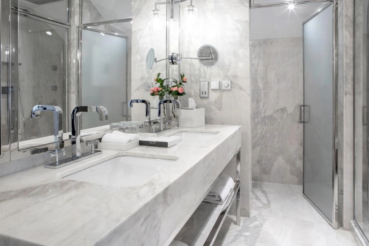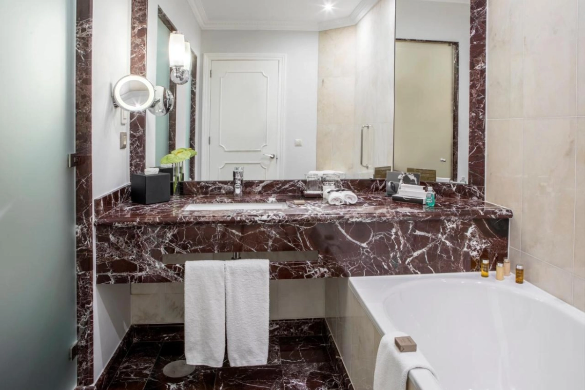 The 105 spacious rooms and suites unfold with elegant poise, featuring high ceilings, flat-screen TVs, minibars, and opulent marble bathrooms with separate bathtubs, walk-in showers, and premium toiletries. Select accommodations include seating areas with plush chairs, creating serene sanctuaries that blend the palace's timeless legacy with subtle modern ease. The devoted staff ensures impeccable details, from evening turndown to personalized welcomes, fostering a sense of quiet belonging amid Porto's vibrant murmur.