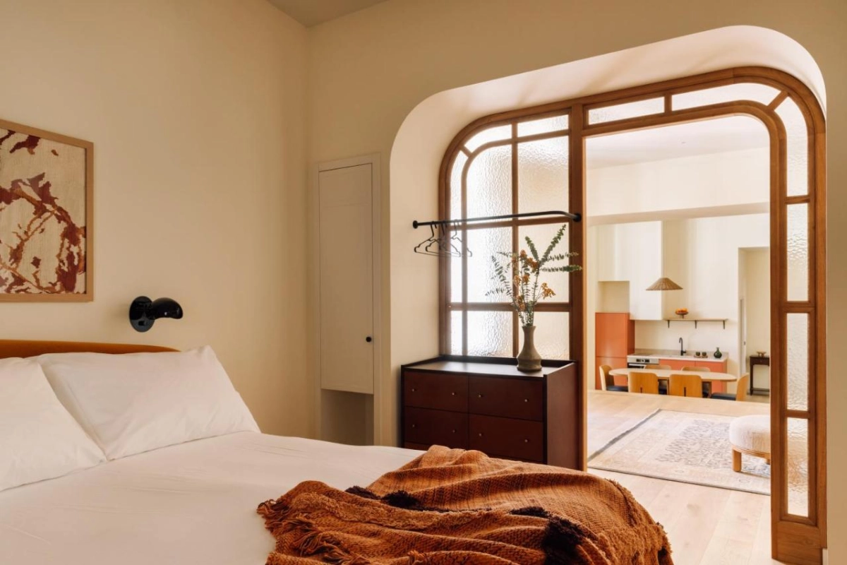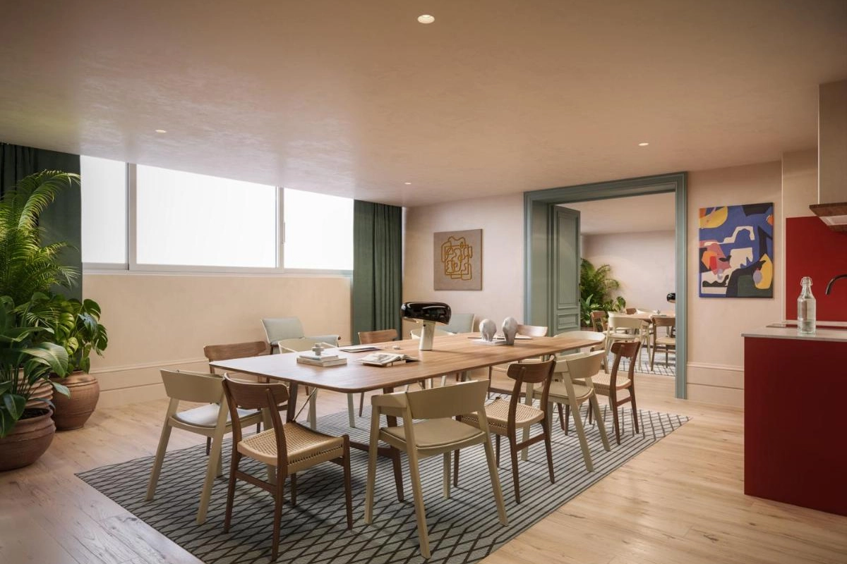 The 370 rooms, including studios and suites, unfold with airy simplicity, featuring air-conditioned spaces, flat-screen TVs, kettles, minibars, and private bathrooms with showers, hairdryers, and premium toiletries. Select units boast kitchens with fridges and wardrobes, creating tranquil havens where attentive staff ensure thoughtful touches, from plush linens to warm welcomes, fostering a sense of belonging amid Lisbon's lively pulse. The design weaves restored tiles and open courtyards with modern accents, evoking a homey feel for longer stays.