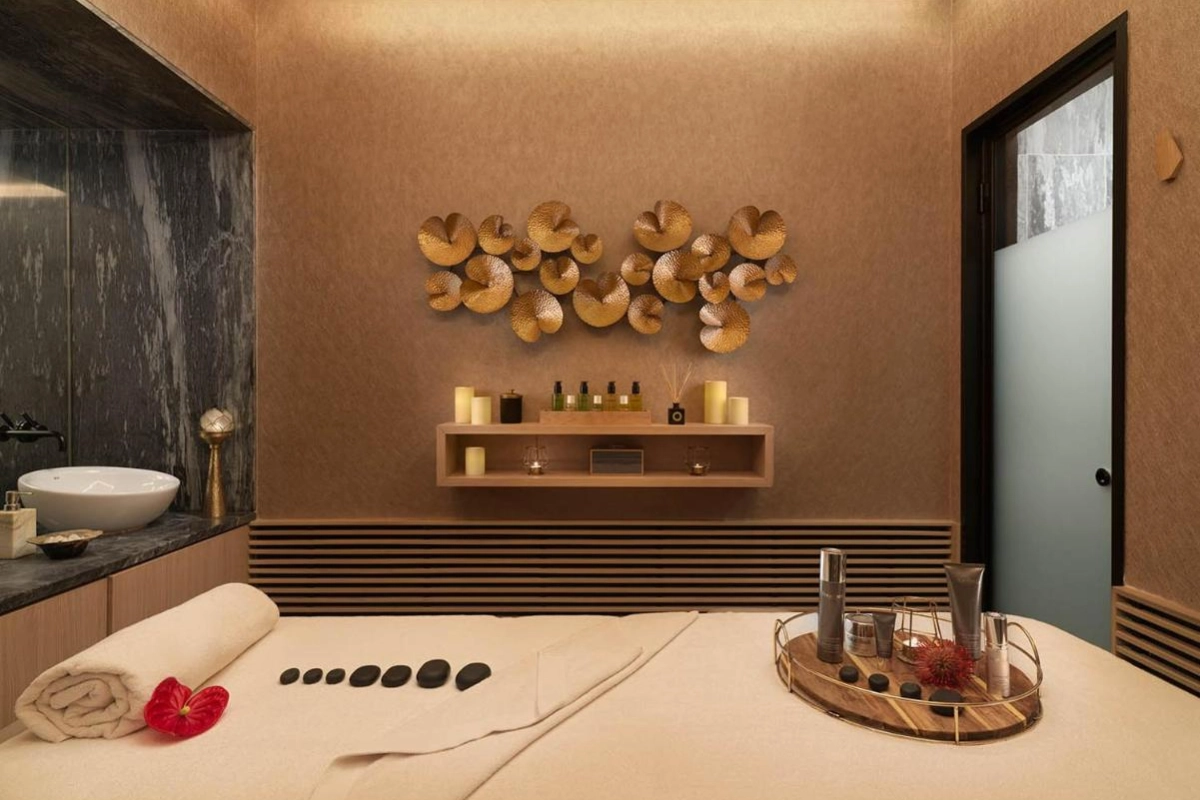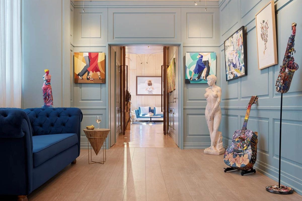 The 26 air-conditioned rooms and suites unfold with refined intimacy, featuring flat-screen TVs, coffee machines, minibars, safety deposit boxes, kettles, and opulent bathrooms with showers and premium toiletries. Select accommodations boast balconies or pool views, creating serene havens where the devoted staff ensures thoughtful details, from plush linens to personalized welcomes, fostering a sense of quiet belonging amid the avenue's gentle murmur. The sophisticated interior, in neutral tones, breathes elegance through every arch and alcove.