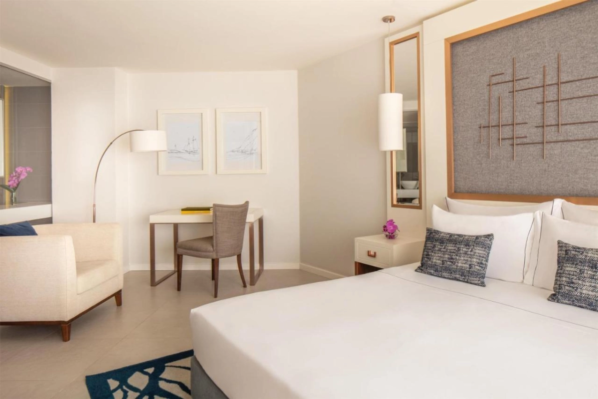 The 236 spacious rooms unfold with contemporary elegance, featuring air-conditioned comfort, flat-screen TVs, minibars, desks, and opulent bathrooms with showers and premium toiletries. Select suites boast sea or garden views, creating cheerful retreats perfect for shared adventures or quiet couples' escapes, while the devoted staff ensures thoughtful details, from plush linens to personalized welcomes, fostering a sense of easy belonging amid the ocean's soft cadence.