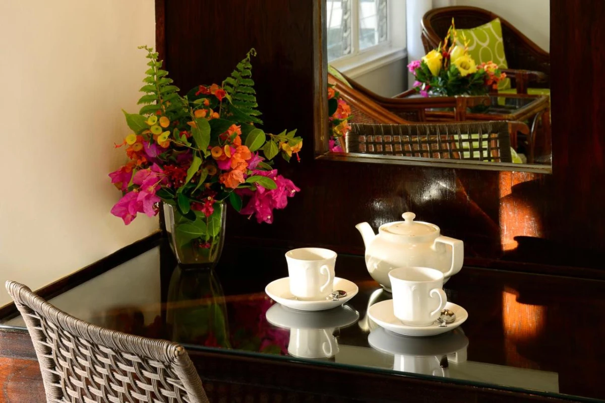 The 19 stylish rooms and suites feature air-conditioned comfort, Porthault linens, minibars, and chic bathrooms with Elemis Spa products. Private terraces open to stunning sea views, crafting a restful haven for couples or solo travellers. An outdoor pool, private beach with cabanas, and complimentary Wi-Fi create a connected yet peaceful setting.