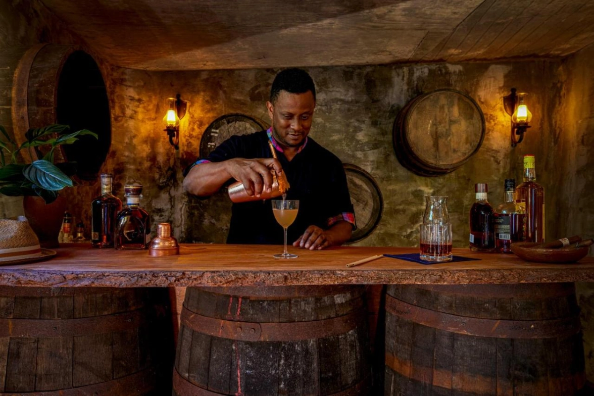 Dasheene restaurant, led by Chef Nigel Mitchel, serves St. Lucian farm-to-table dishes like roast conch and plantain gratin, using produce from onsite gardens. Breakfasts brim with fresh guava and pastries, while Friday's Sunset Fish Fry pairs seafood with live music. The Hideaway Rum Bar, tucked in a cave, offers rum tastings and cocktails, blending spice-scented breezes with evening warmth.