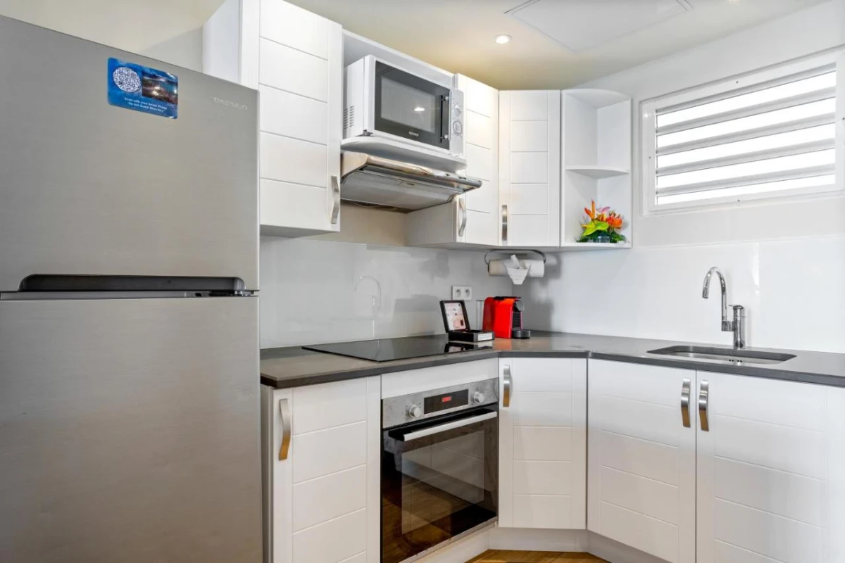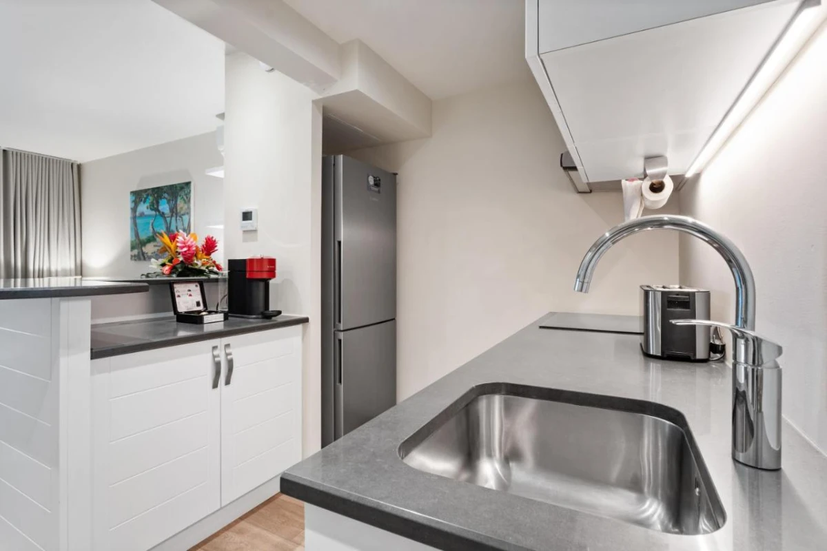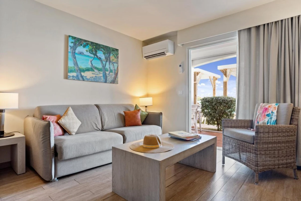 The 71 fully renovated rooms and suites feature flat-screen TVs, fully equipped kitchens with refrigerators and coffee makers, and private balconies or terraces with views of lush gardens or the turquoise ocean. Air-conditioned spaces and en-suite bathrooms with premium toiletries create a cozy haven for couples or travellers. Two pristine beaches, an outdoor pool, and complimentary Wi-Fi offer a connected yet tranquil setting.