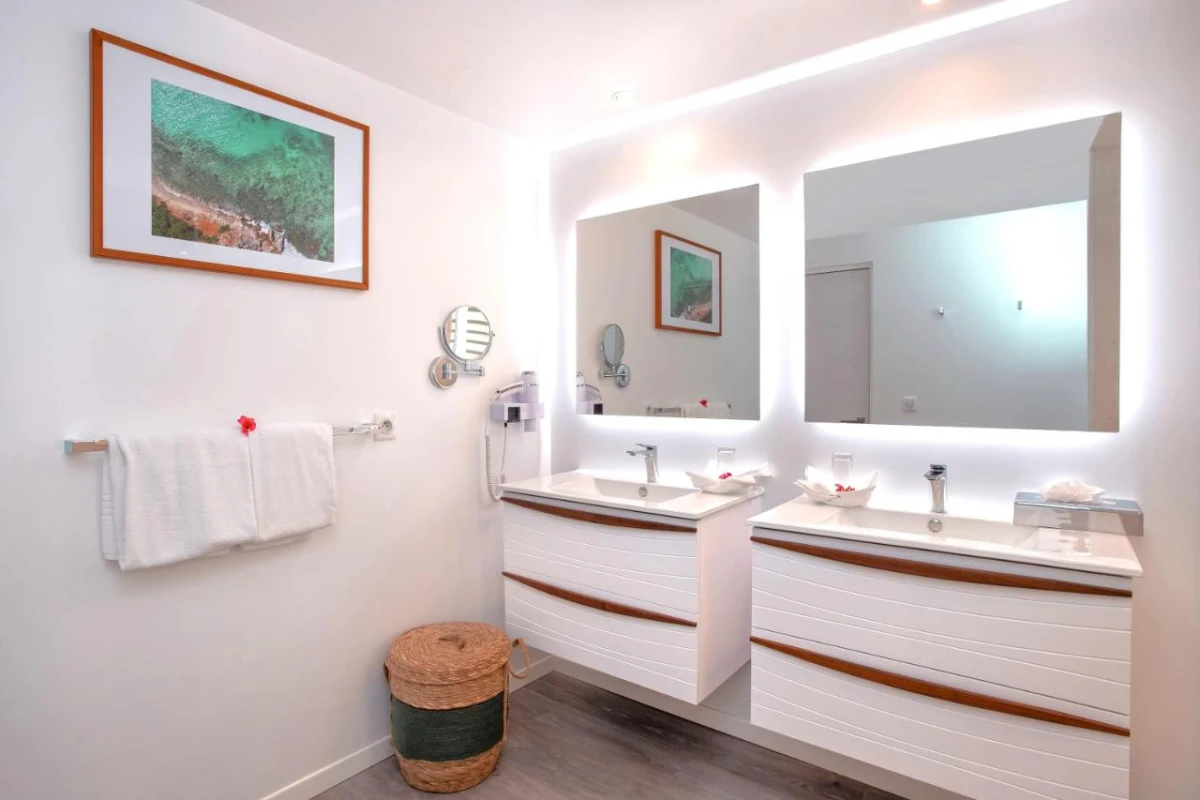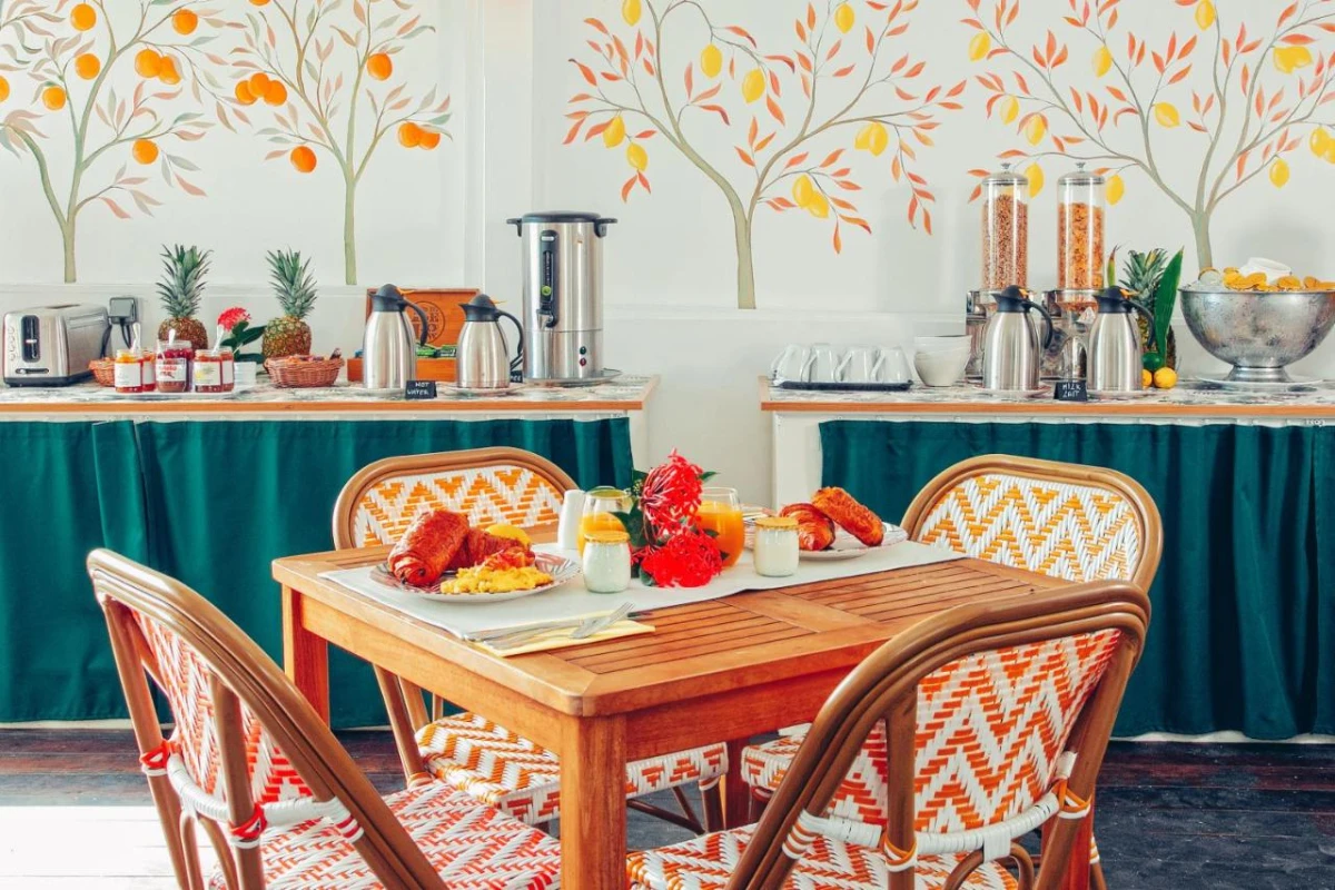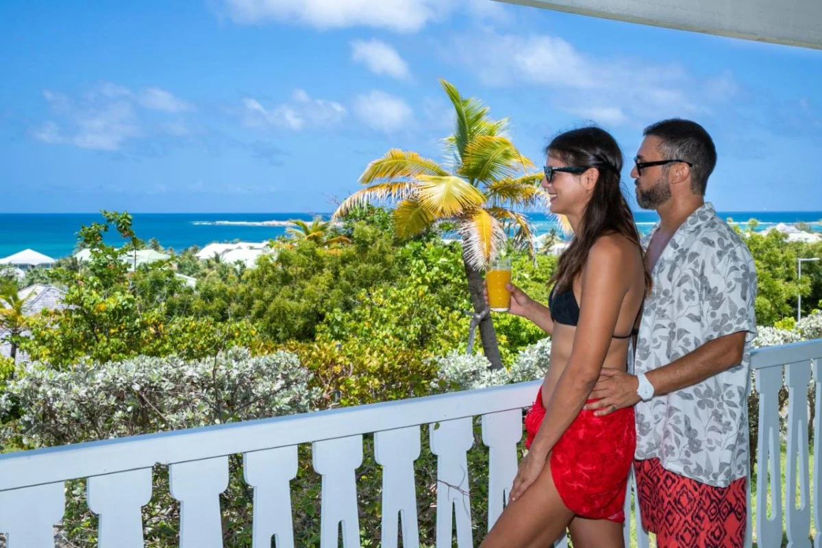 The 17 colonial villas, spread across 7.5 acres of tropical gardens with palms, banana trees, and bougainvillea, house one Master Suite and two Junior Suites, connectable for flexibility. Each suite features warm tones, hand-painted murals, teak furnishings, air conditioning, flat-screen TVs, fully equipped kitchenettes, minibars, and private bathrooms with premium toiletries. Spacious terraces, cooled by trade winds, offer upper-level suites sweeping views of Orient Bay, crafting a cozy haven for couples or travellers. A freshwater pool with a sun deck and complimentary Wi-Fi create a connected yet tranquil setting.