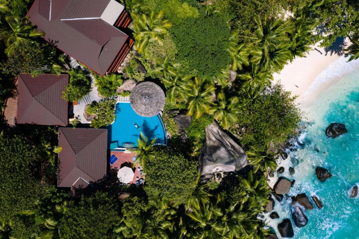 Each of the 111 spacious villas features deluxe bedding, flat-screen TVs, DVD players, sofas, and private terraces, some with sweeping Indian Ocean views. Luxurious bathrooms include rainfall showers, bathrobes, and premium toiletries. The Eforea Spa, set amid granite boulders and lush greenery, offers rejuvenating treatments like the Foot and Legs Mini Journey, blending ancient Egyptian and Native American techniques, with a plunge pool and serene views. The infinity pool, framed by tropical palms, invites relaxation, while the 24-hour gym provides cardio and free weights. The 5-star PADI Labriz Dive Centre offers snorkeling, diving, and open-water courses, with complimentary kayaks and guided hikes revealing Silhouette's vibrant reefs and rare flora, like incense trees and exotic orchids.