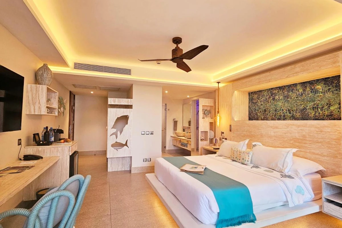 The 43 elegantly appointed rooms, suites, and apartments feature air conditioning, flat-screen TVs, tea and coffee facilities, and private balconies or terraces with ocean or garden views. Spacious bathrooms include rainfall showers, bathrobes, and premium toiletries, while apartments offer fully equipped kitchens for added comfort. The serene spa, voted the best on Praslin, provides rejuvenating massages and beauty treatments, complemented by a top-tier fitness centre. Complimentary snorkeling, diving, and fishing unlock the vibrant marine life of Côte d'Or, with bicycle rentals and curated excursions revealing Praslin's natural wonders. Entertainment nights every Wednesday, Friday, and Saturday add a lively touch.