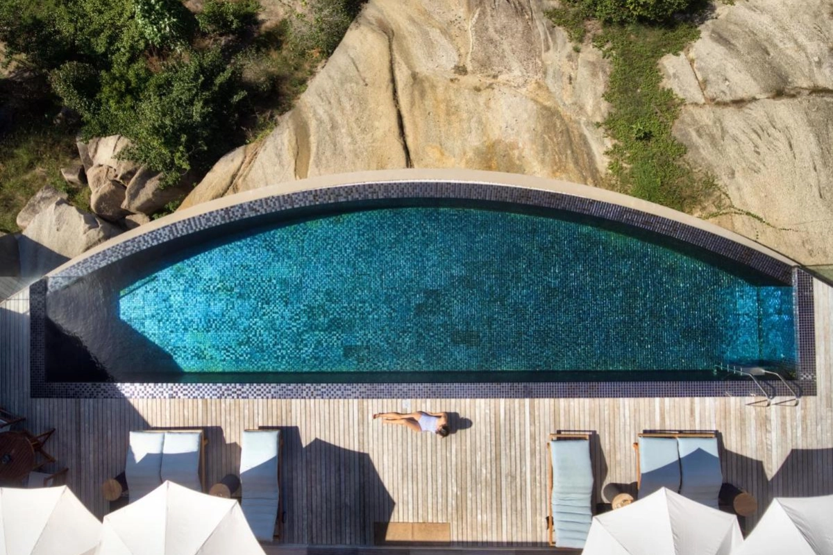 The 30 one- and two-bedroom villas and residences feature private infinity pools, sundecks, outdoor dining areas, air conditioning, ceiling fans, satellite TVs, personal wine cellars, and minibars. Spacious bathrooms include rainfall showers, bathrobes, and premium toiletries, with panoramic ocean views enhancing the serene retreat. The Six Senses Spa, nestled among towering boulders, offers five themed treatment villas, a sauna, steam rooms, yoga pavilion, and an elevated saltwater pool. Complimentary snorkeling, kayaking, stand-up paddleboarding, and diving reveal the island's vibrant marine life, while walking trails and curated fishing or boat excursions to nearby islands add adventure.