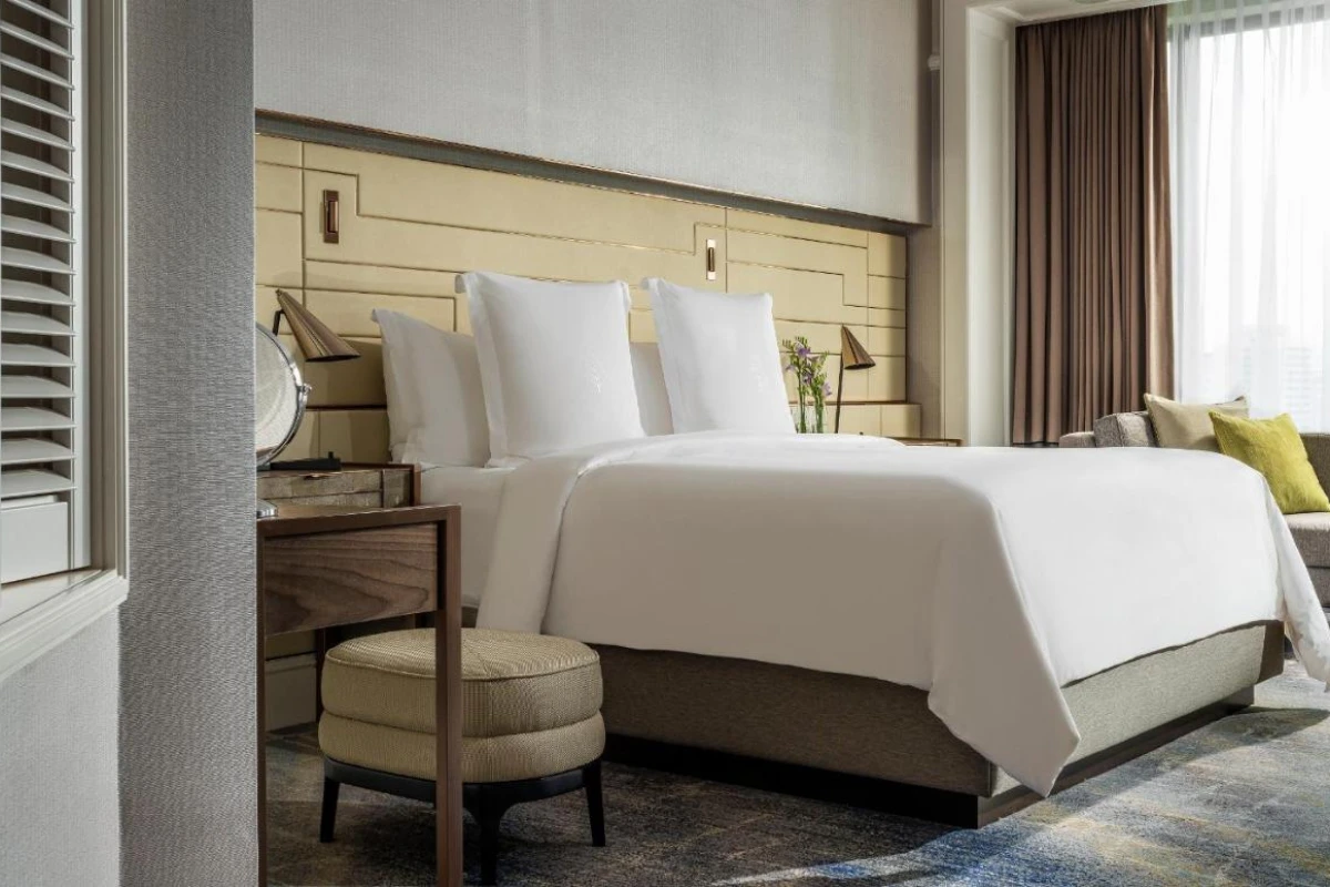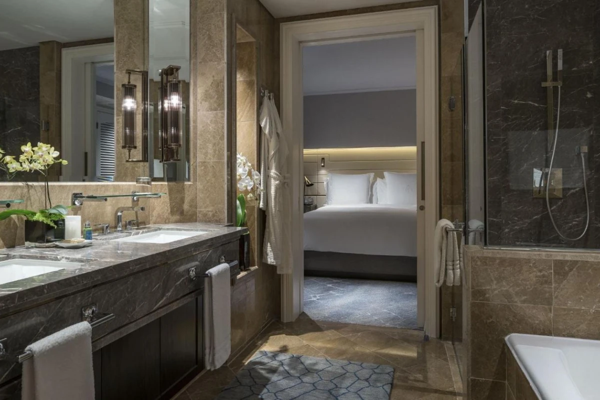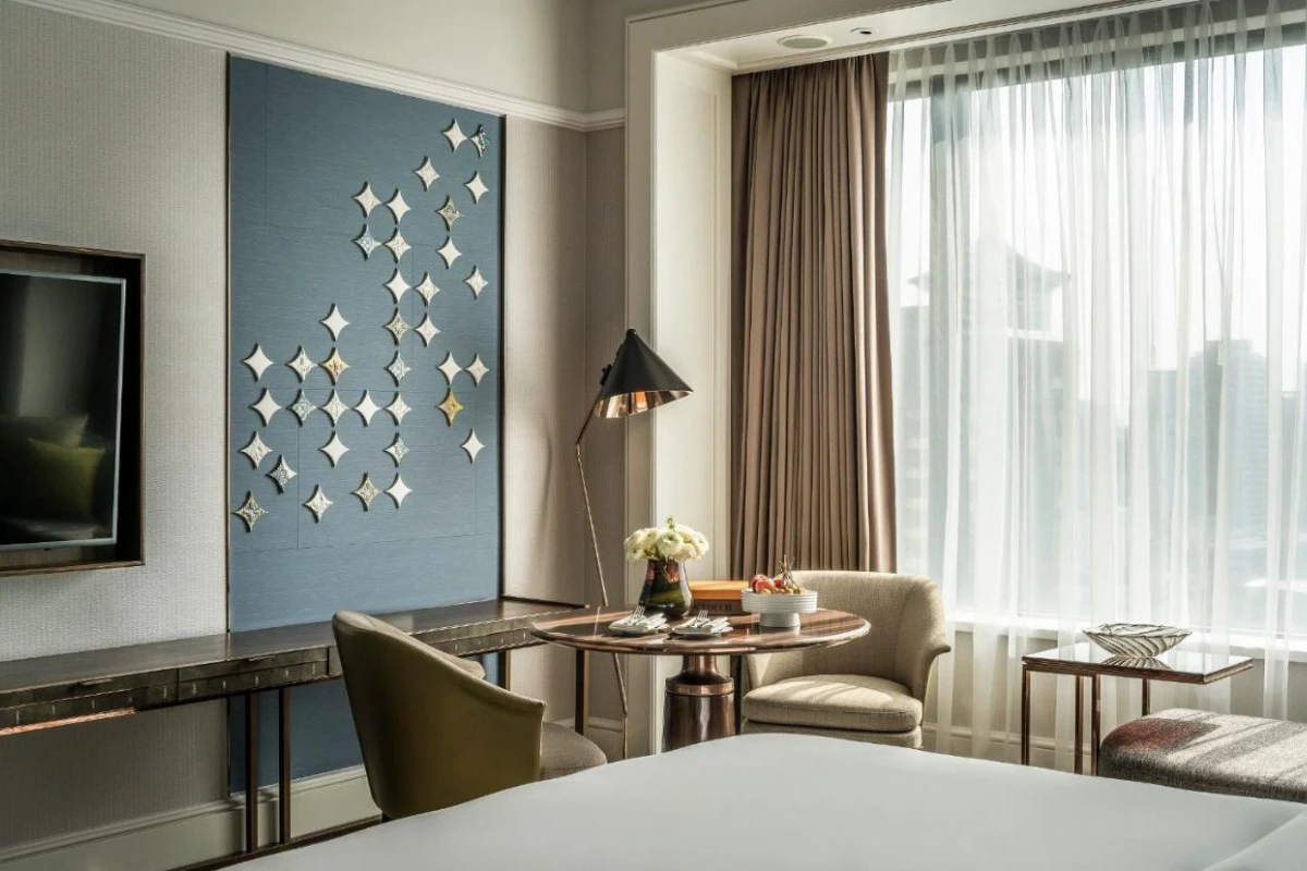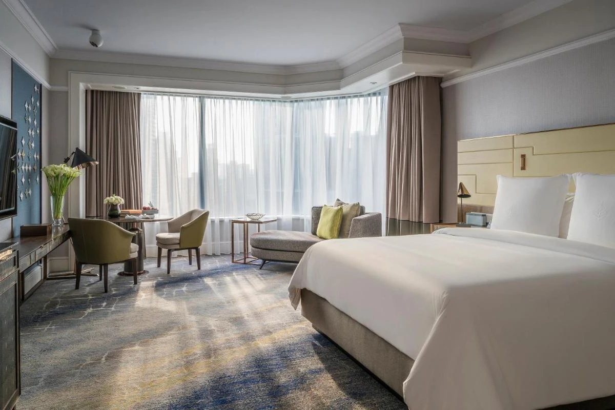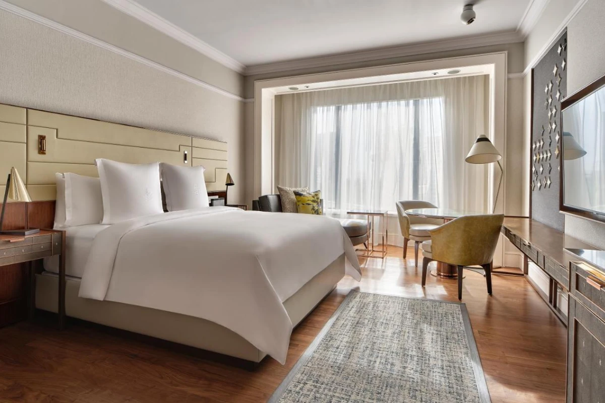 The 255 elegant rooms unfold with airy sophistication, featuring high ceilings, large bay windows, satellite TVs, portable Bose Bluetooth speakers, universal sockets, USB charging ports, minibars, and sleek bathrooms with separate bathtubs, showers, bidets, bathrobes, and premium toiletries. Select suites offer spacious living areas for relaxed moments, creating tranquil havens where attentive staff ensure thoughtful details, from plush linens to warm welcomes, fostering a sense of belonging amid the city's dynamic pulse.