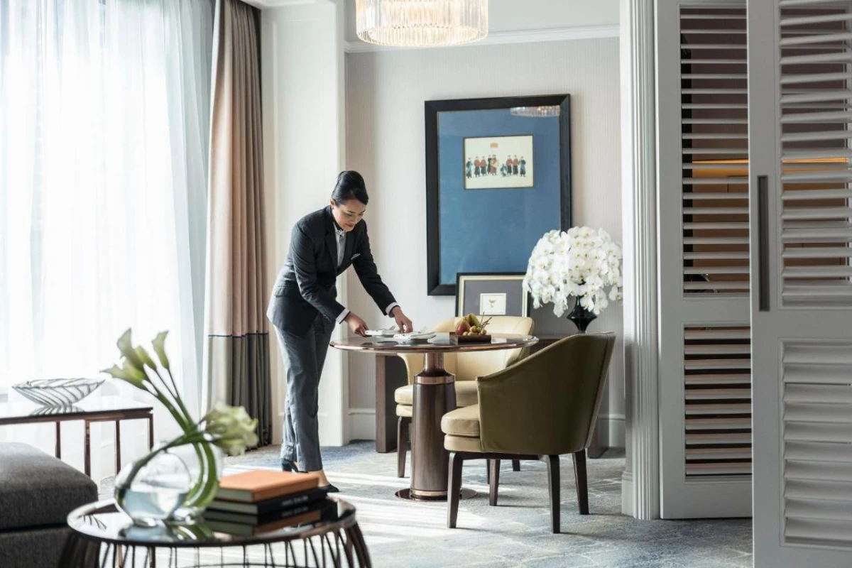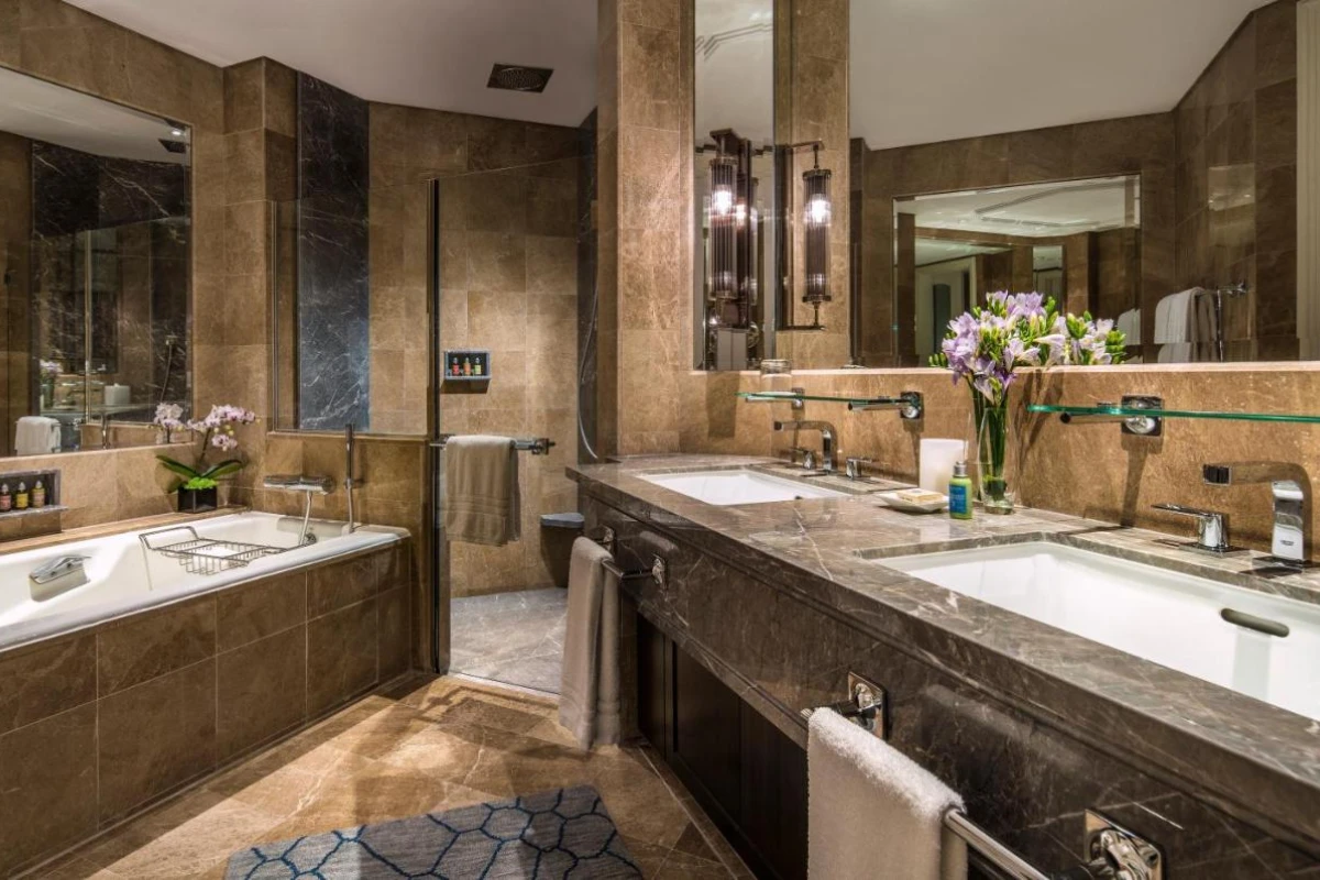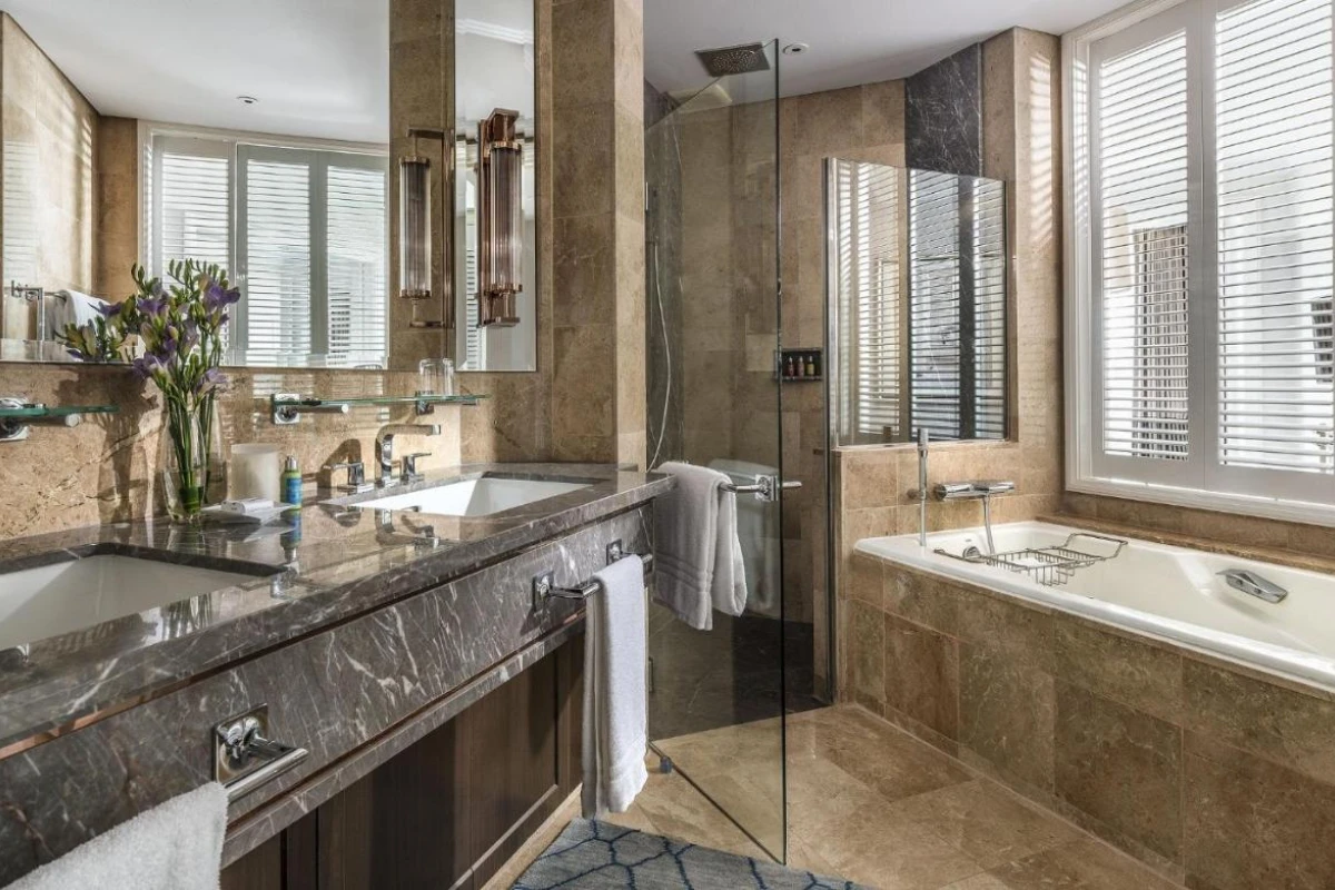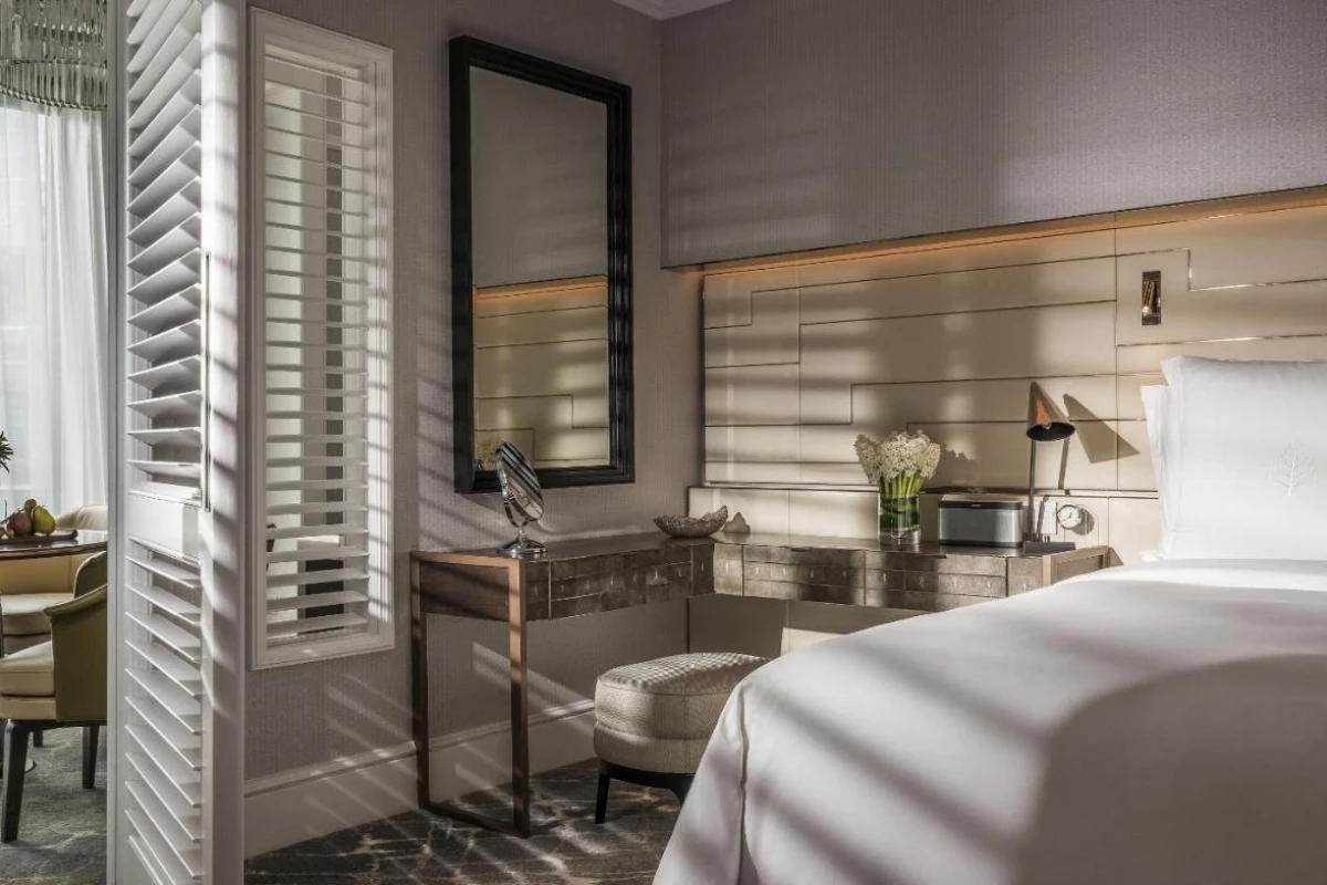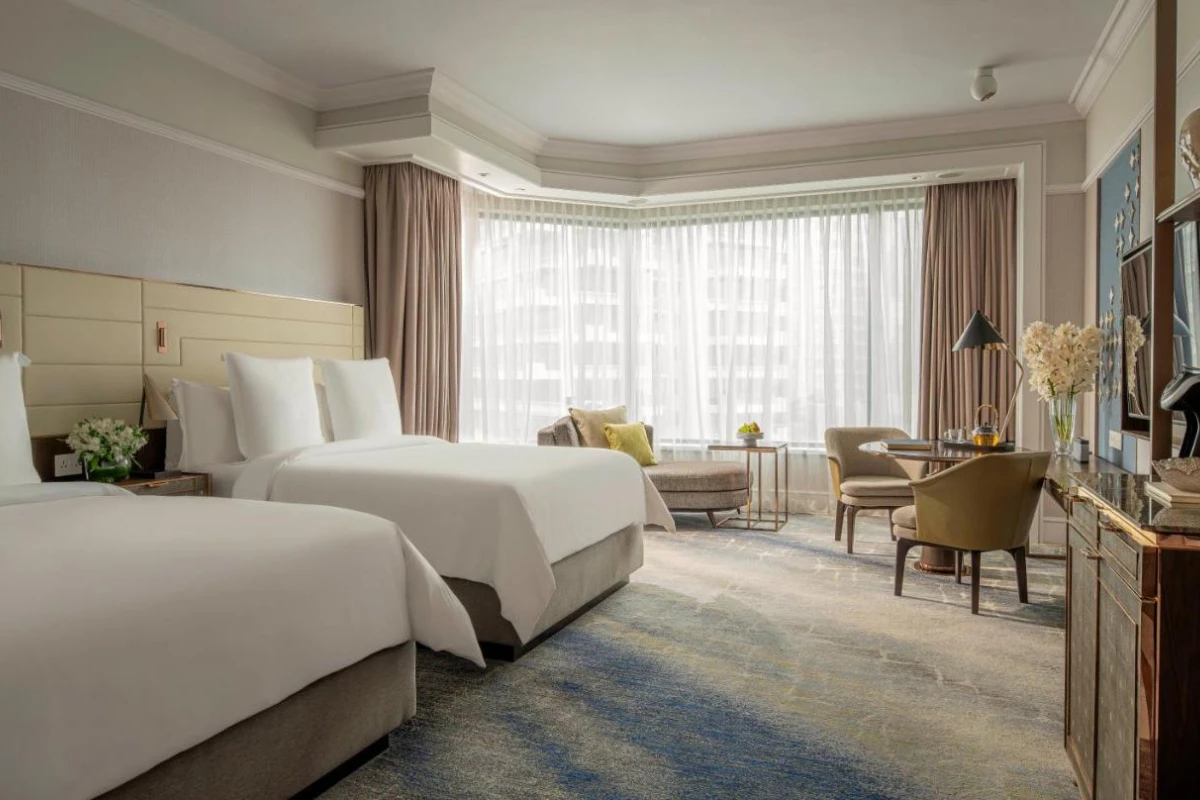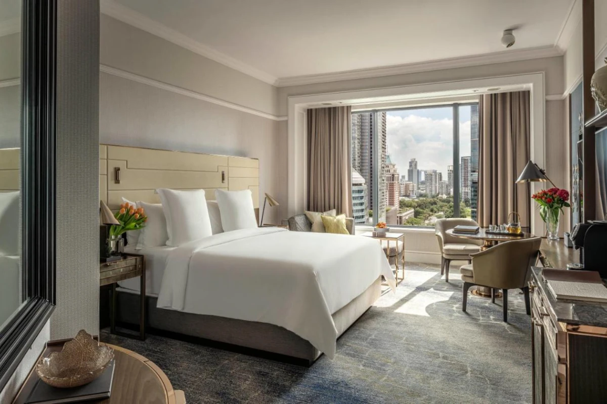 The 255 elegant rooms unfold with airy sophistication, featuring high ceilings, large bay windows, satellite TVs, portable Bose Bluetooth speakers, universal sockets, USB charging ports, minibars, and sleek bathrooms with separate bathtubs, showers, bidets, bathrobes, and premium toiletries. Select suites offer spacious living areas for relaxed moments, creating tranquil havens where attentive staff ensure thoughtful details, from plush linens to warm welcomes, fostering a sense of belonging amid the city's dynamic pulse.