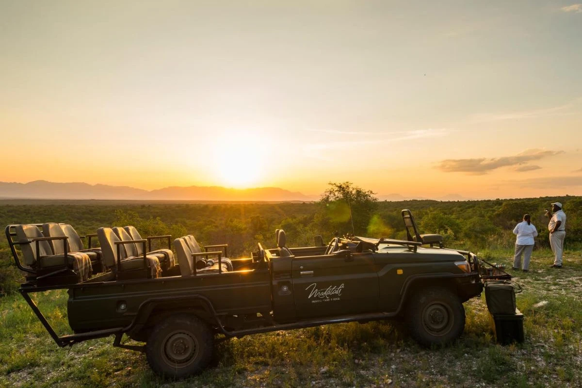 All-inclusive dining showcases fresh, local cuisine, served on private decks for intimate moments or in the inviting dining lounge, where guests can relax by a cosy fireplace. The lodge's warm hospitality enhances the experience, with twice-daily game drives included in the rates, offering thrilling encounters with the reserve's diverse mammals and plains game, guided by expert rangers.