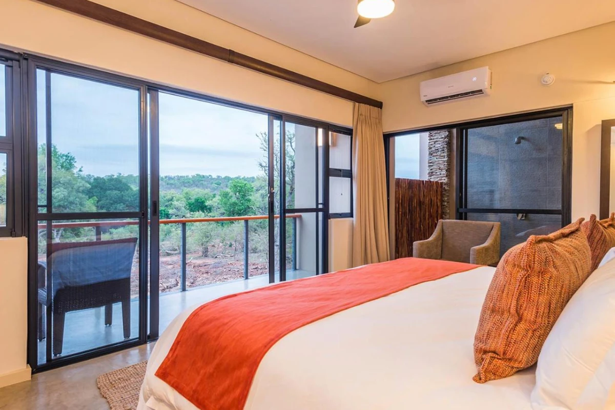 The lodge comprises three intimate camps, each with six exquisitely appointed suites, featuring en-suite bathrooms with indoor and outdoor showers, timber viewing decks overlooking the river, and private plunge pools in the River Lodge camps. The Main Lodge offers superior rooms, blending rustic elegance with modern comforts, ensuring a refined connection to the vibrant bushveld teeming with the Big Five, cheetah, wild dog, and over 250 recorded bird species.