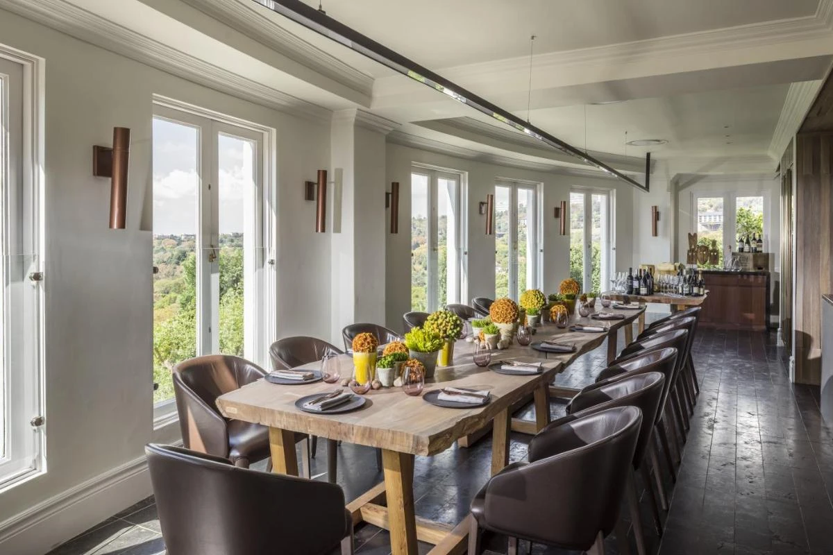 The sophisticated rooms, designed for refined comfort, feature air-conditioning, spacious seating areas, flat-screen satellite televisions, minibars, and iPod docks, with private balconies showcasing endless treetop vistas. Guests can ascend via the glass elevator to Flames, where seasonally inspired South African and international cuisine delights, or visit The Cellar Door for an intimate food and wine pairing experience in a refined dining setting.