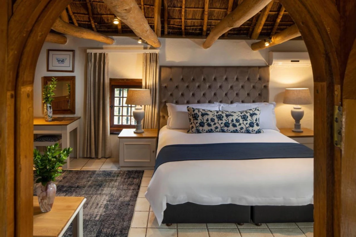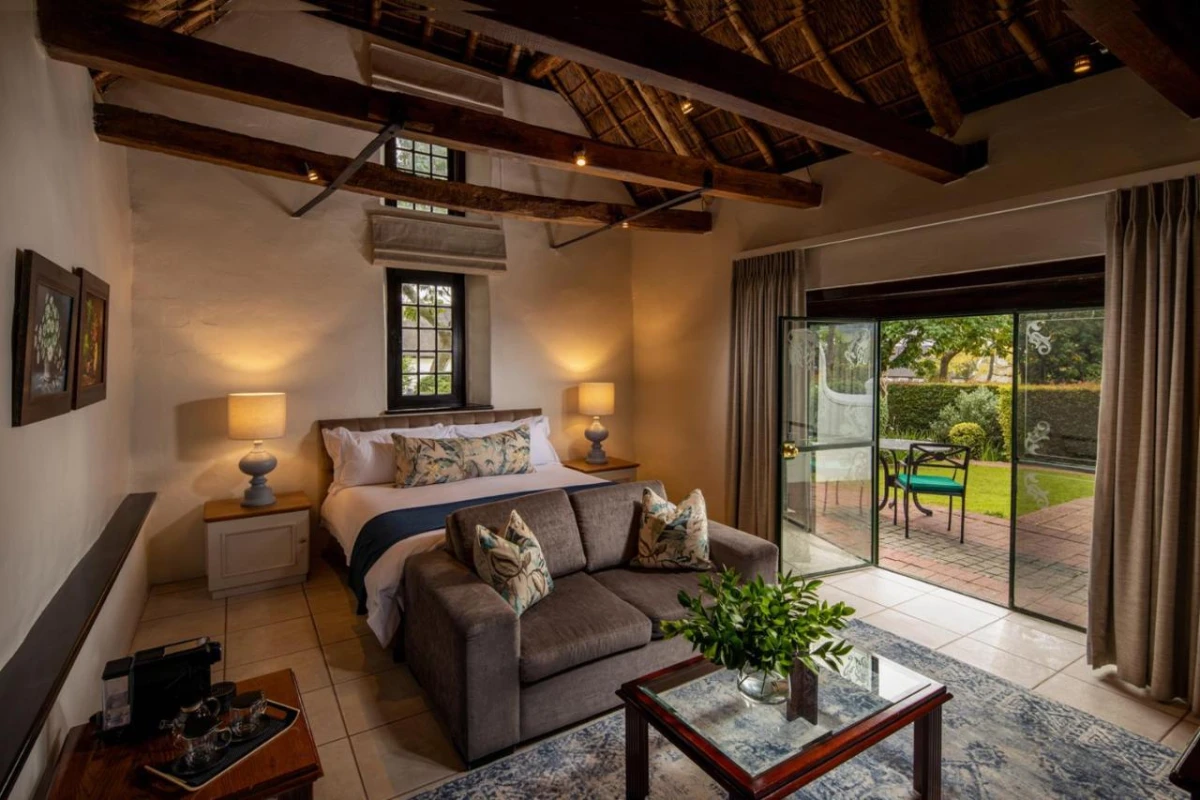 Set amidst beautiful gardens with captivating views of vineyards and mountains, the hotel's air-conditioned rooms feature flat-screen satellite televisions, fridges, kettles, hairdryers, wardrobes, and private bathrooms with complimentary toiletries, ensuring refined comfort. The Manor House, steeped in history, exudes timeless sophistication, blending period elegance with modern amenities for a serene and unhurried stay.