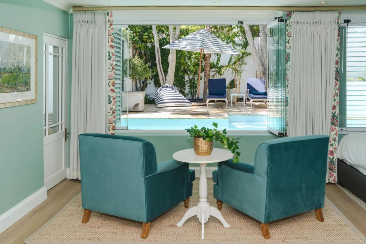 Beautifully restored in the Cape Huguenot tradition, the air-conditioned rooms blend classic and contemporary furnishings, featuring luxurious bathrooms, satellite LCD televisions with DVD players, iPod docking stations, and work desks, ensuring sophisticated comfort. Each space reflects sumptuous home comforts, creating an intimate and elegant retreat amidst the vibrant village atmosphere.
