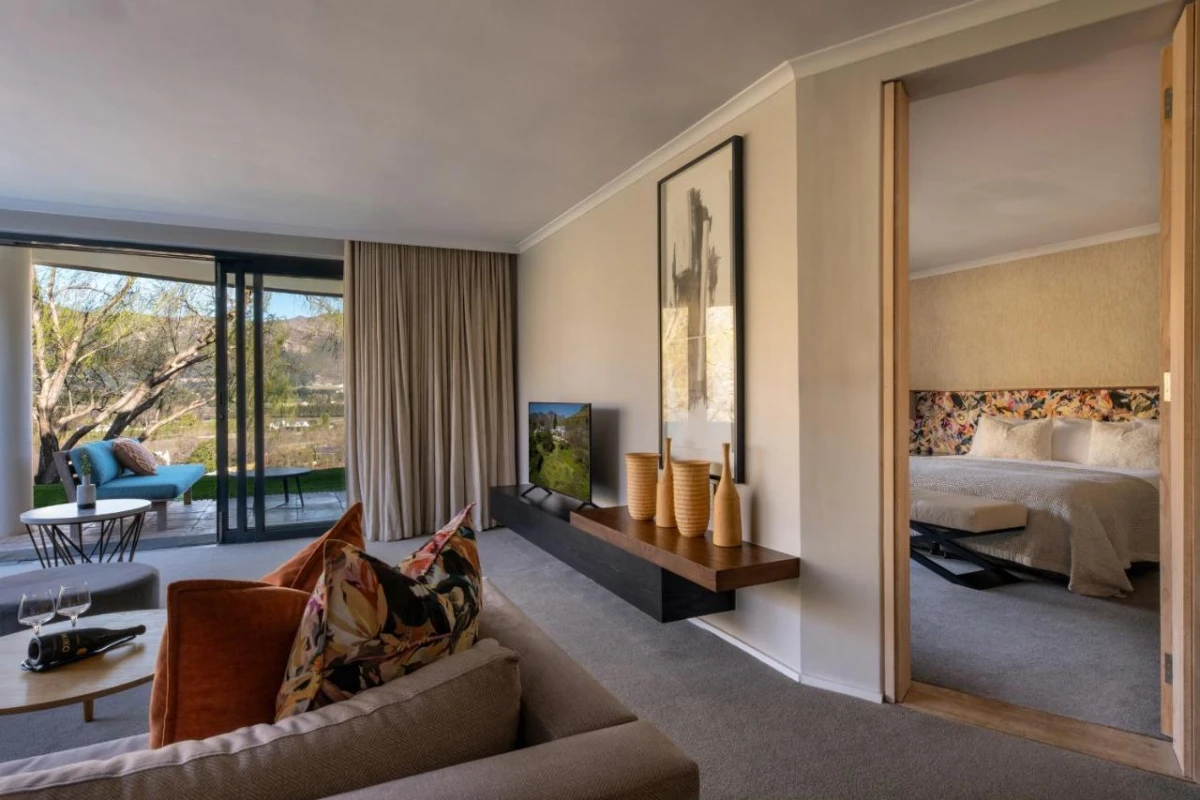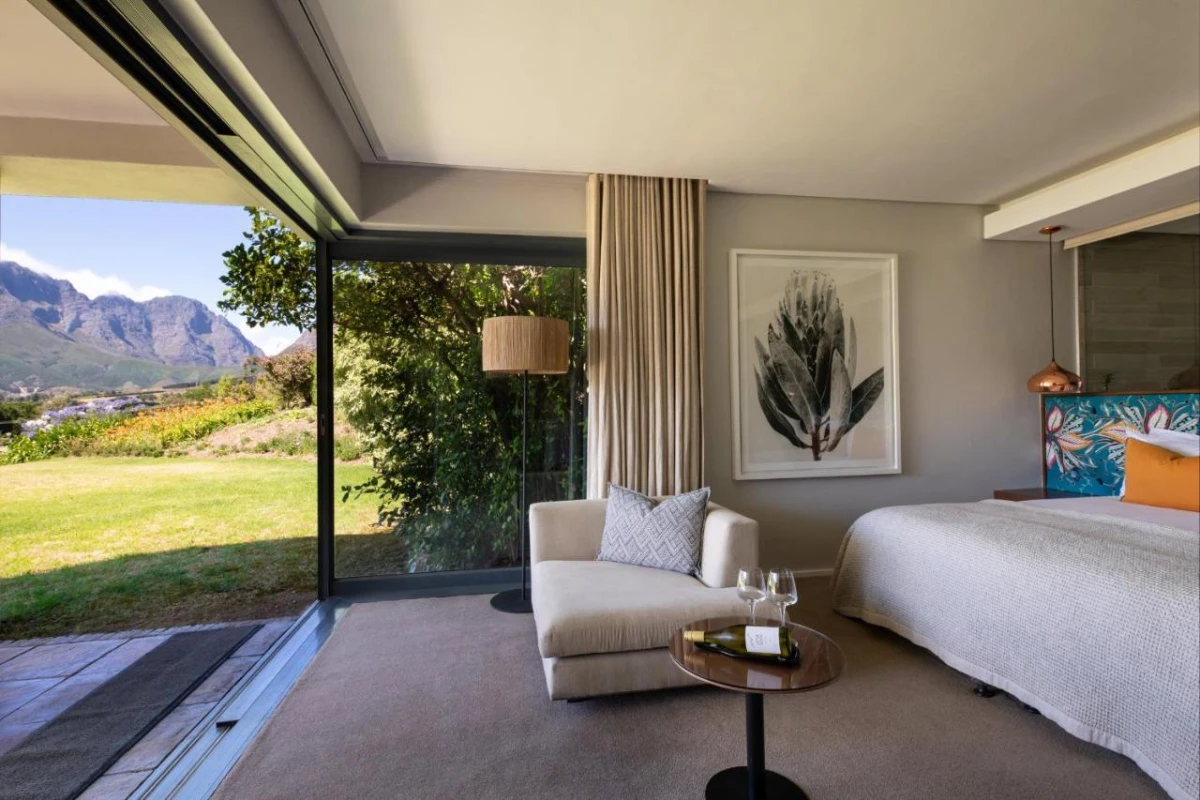 The 26 beautifully appointed rooms and suites, alongside the exclusive four-bedroom Manor House, feature sophisticated interiors with the option for twin beds upon request, blending modern comfort with the timeless allure of the Winelands. Each space is designed for refined relaxation, complemented by the estate's warm hospitality and access to a vibrant working vineyard where daily wine tastings, available for guests and visitors, showcase Mont Rochelle's acclaimed wines.