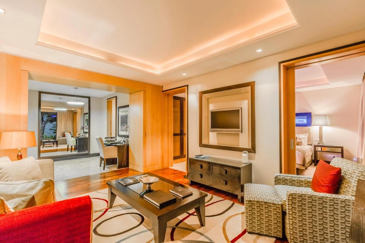 The Jazz Room Restaurant delivers a fine dining experience with sumptuous cuisine, complemented by an extensive wine cellar and a whiskey and cigar bar for refined relaxation. Guests can unwind by the sparkling swimming pool, indulge in rejuvenating treatments at the TITE Medi Spa by Camelot, or enjoy exclusive screenings in the private cinema. A state-of-the-art 10-seater boardroom caters to business needs, while a well-equipped gym supports wellness.