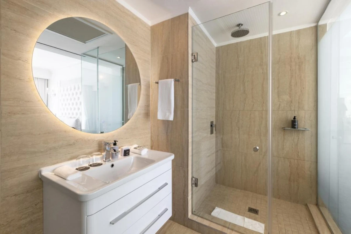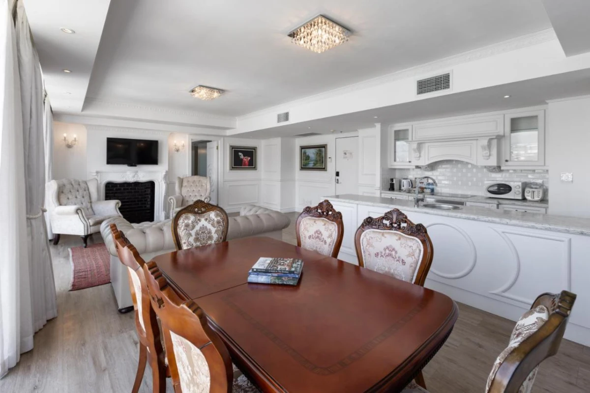 Dining options include Ruby's Bakery and Café for delightful breakfasts and lunches, COPA Restaurant's contemporary menu of exquisite cuisine, and the modern Paparazzi Bar for drinks and light meals. The 8th-floor Pool Deck, with its sparkling outdoor pool, offers a serene retreat with panoramic views, while the wellness centre, featuring a gym and private cinema, and exclusive access to Camps Bay's beach club facilities elevate relaxation.