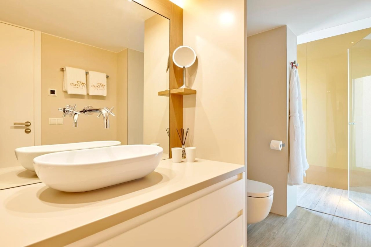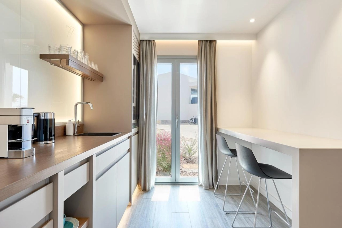 The 185 suites and two four-bedroom Grand Villas unfold with sophisticated warmth, featuring air-conditioned comfort, flat-screen TVs, minibars, and sleek bathrooms with premium toiletries. Each suite offers a balcony or terrace, with cliffside options boasting open-plan living spaces, expansive terraces with sun loungers, and private pools for ultimate seclusion. Designed for a home-from-home feel, these serene havens blend modern elegance with island charm, where attentive staff ensure thoughtful touches, from plush linens to warm welcomes, fostering a sense of belonging amid Ibiza's sunlit allure.
