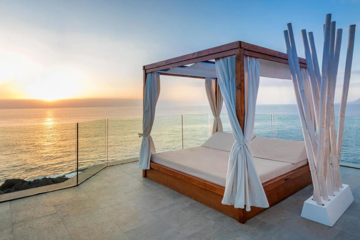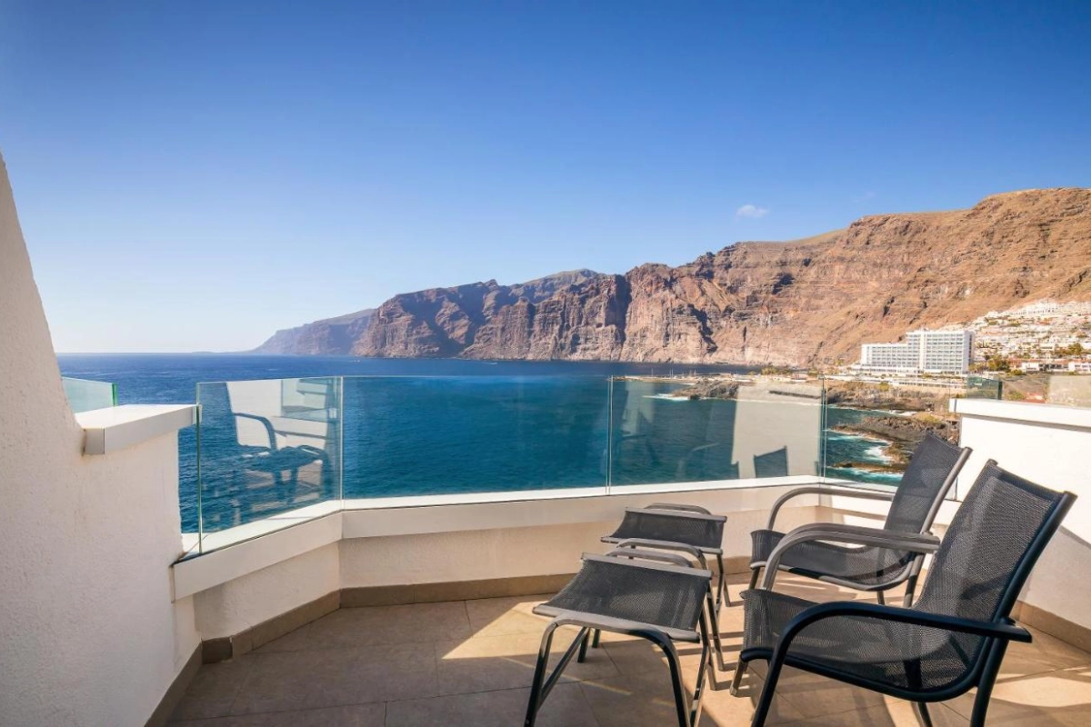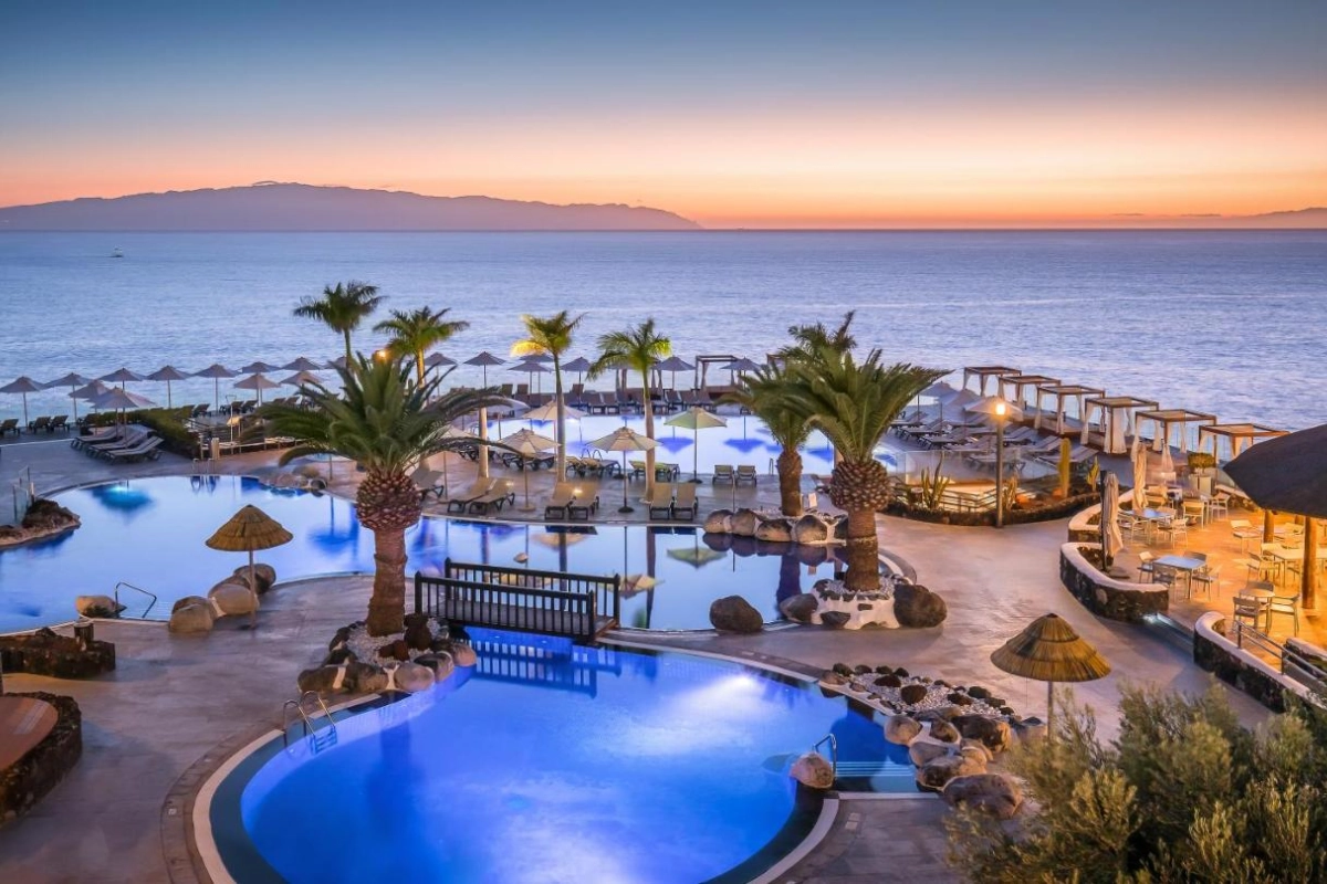 Barceló Santiago, an elegant adults-only retreat perched on a cliff in Tenerife, Spain, enchants with its breathtaking vistas of La Gomera Island and the dramatic Los Gigantes Cliffs, offering a serene escape for those seeking refined relaxation.