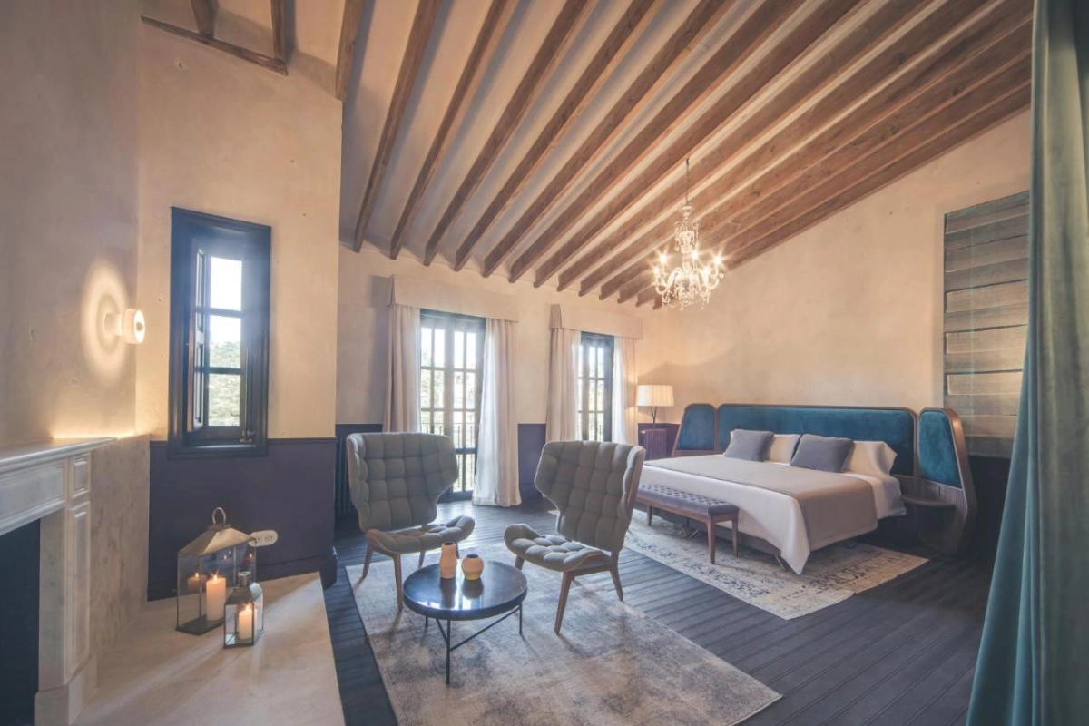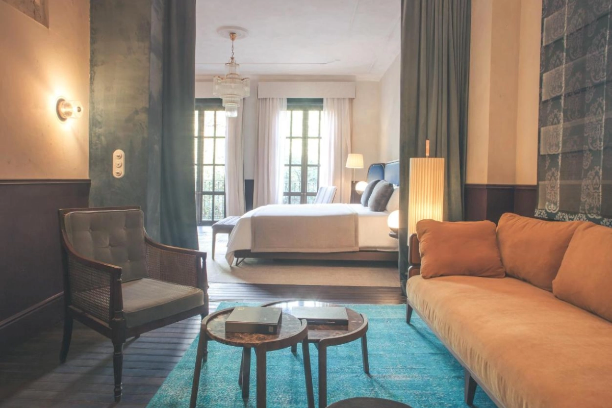 The 24 opulent suites unfold with dramatic warmth, featuring individually controlled air-conditioning, custom-made walnut beds, in-room cocktail bars with integrated stereos, and sleek bathrooms with premium toiletries. Blending vintage and contemporary furnishings, each suite offers a seating area and access to lush courtyards or private terraces, creating tranquil havens where attentive staff ensure thoughtful details, from plush linens to warm welcomes, fostering a sense of belonging amid Palma's vibrant pulse.
