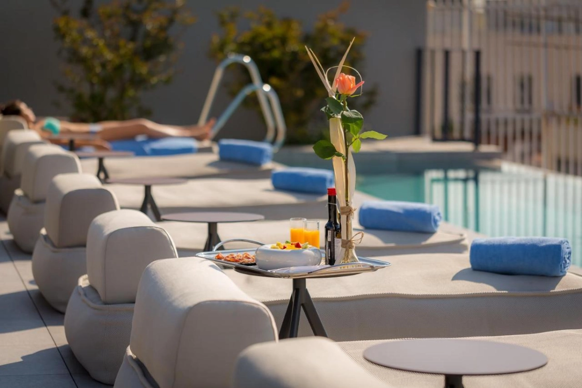 Nestled ten minutes from La Pedrera and Casa Batlló, near Diagonal Avenue and Barcelona El Prat Airport, Ohla Eixample offers seamless access to the city's treasures. A year-round heated rooftop pool, urban garden with olive trees, high-tech gym, beauty treatments, Clef d'Or concierge, and free high-speed WiFi elevate the experience, ensuring serene renewal in a setting of modernist splendor.