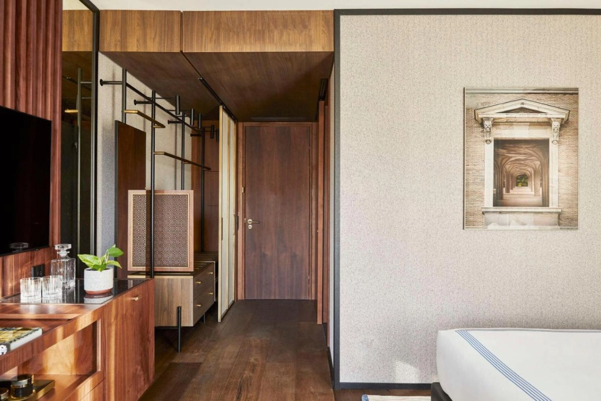 The 175 rooms, including 22 suites and a 2,390-square-foot Penthouse Suite, unfold with warm, curated charm, featuring air-conditioned comfort, 55-inch TVs with Chromecast, minibars with cocktail sets, and black marble bathrooms with showers, freestanding tubs, double sinks, and DS & Durga toiletries. Adorned with amber tones, dark woods, and local art by Andrea Torres and others, suites boast wraparound terraces with city vistas. Each creates a tranquil haven where attentive staff, in Modesto Lomba-designed uniforms, ensure thoughtful touches, from plush linens to custom city maps, fostering a sense of belonging amid Madrid's lively pulse.