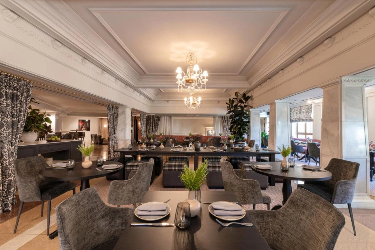 The 130 guestrooms and suites unfold with simple elegance, featuring air-conditioned comfort, flat-screen TVs, coffee machines, minibars, safety deposit boxes, and sleek marble bathrooms with showers and premium toiletries. Quirky layouts, some with sunken living areas or bronze statues outside windows, reflect the building's historic roots, adorned with music-inspired art. Each creates a tranquil haven where courteous staff ensure thoughtful touches, from plush linens to warm welcomes, fostering a sense of belonging amid Madrid's cultural pulse.