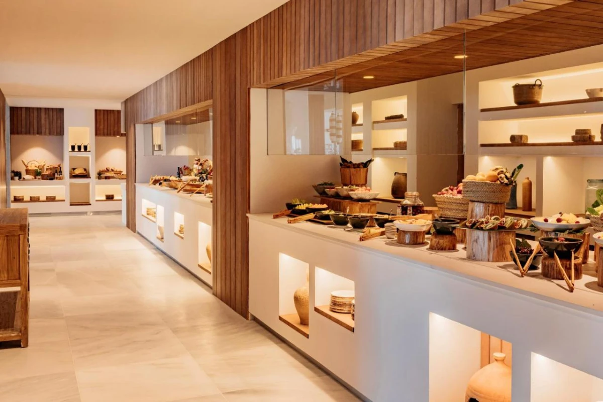 The 159 air-conditioned rooms radiate vibrant, modern décor, featuring satellite TVs, ceiling fans, minibars, safes, and private bathrooms with hairdryers and premium toiletries. Most rooms open to private balconies, some with captivating sea views, blending contemporary elegance with coastal serenity for a refined stay.