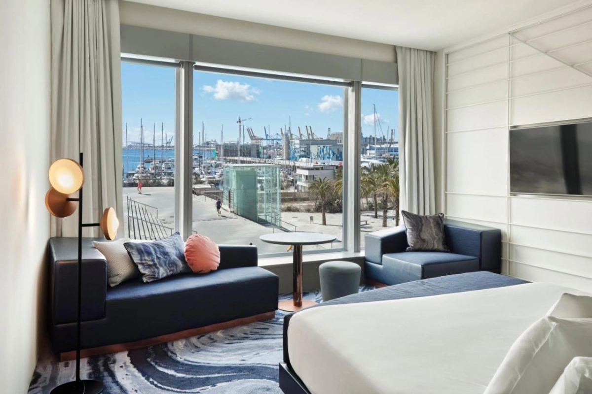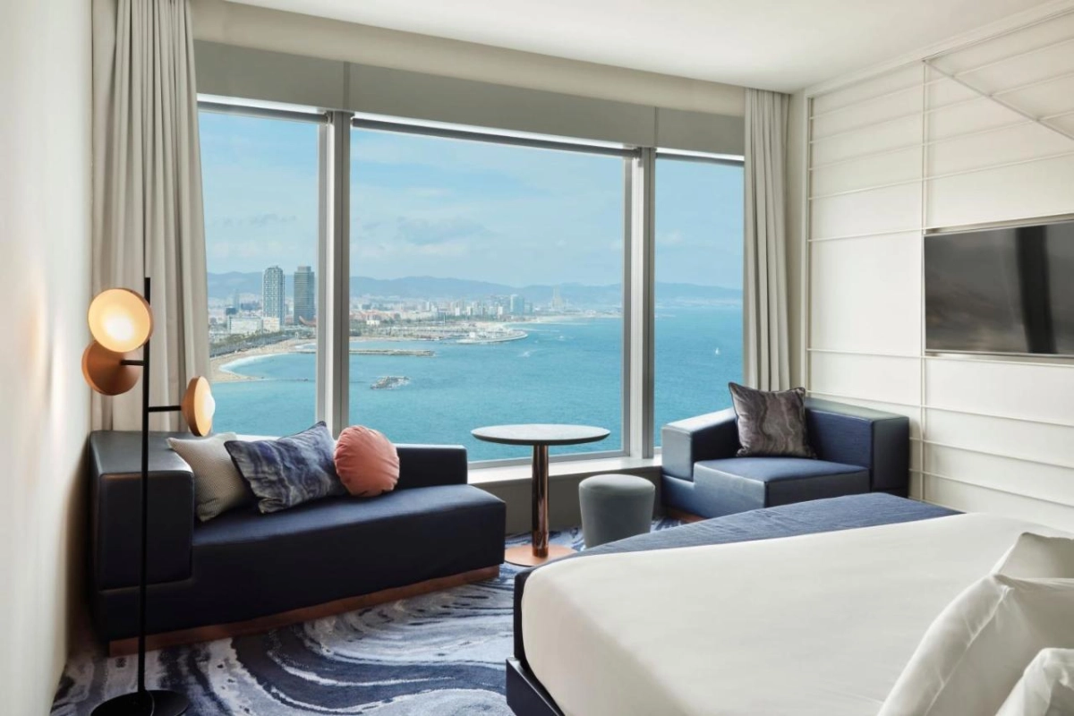 W Barcelona, a luxurious five-star urban resort shaped like a striking sail beside Barceloneta Beach, captivates with its avant-garde design and breathtaking Mediterranean views, blending vibrant energy with serene sophistication in the heart of Barcelona's coastal pulse.