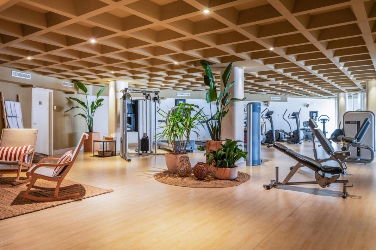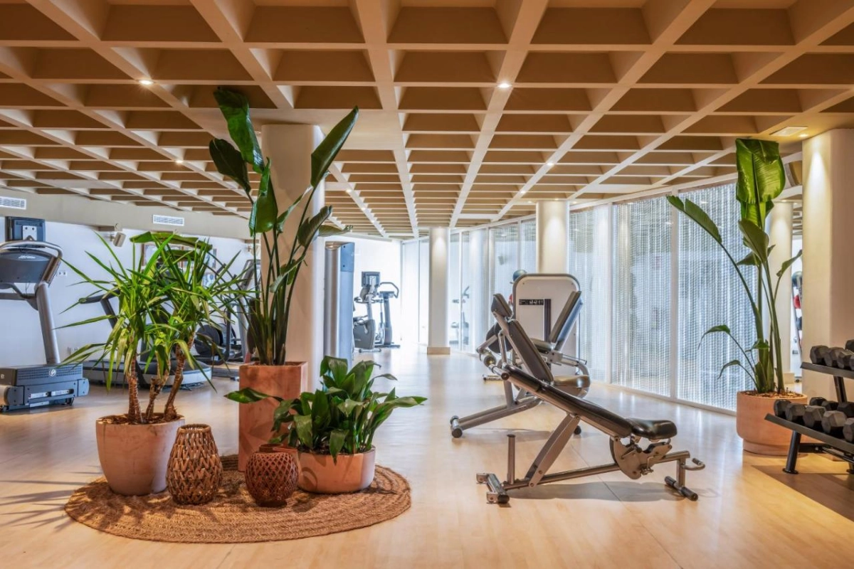 Dining at Beso Beach Mallorca delights with à la carte Mediterranean cuisine, including adapted menus for intolerances, vegetarian, and vegan preferences, served against a backdrop of ocean vistas. The pool bar, beach bar, cafeteria, and snack bar offer light bites, specialty coffees, and refreshing cocktails, perfect for leisurely afternoons. The luxurious spa invites rejuvenation with body scrubs, massages, wraps, Jacuzzi, sauna, steam room, and solarium access, complemented by a fully equipped gym. A dynamic activities program features yoga retreats, barre sessions, fitness classes, movie nights, wine tastings, DJ performances, and live music, while sports like tennis, golf, and scuba diving are available nearby. The Mediterranean courtyard serves as a cozy hub for energizing mornings with coffee and evening verbena festivities, fostering a healthy, active lifestyle.