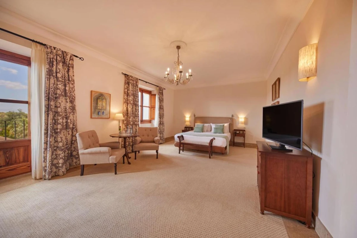 The 90 rooms and suites, spread across the Tramuntana and Ponent areas, feature air-conditioned sophistication with flat-screen TVs, electric kettles, minibars, and private bathrooms with hairdryers and premium toiletries. Many open to balconies overlooking lush gardens or historic treasures like the 15th-century windmill and neo-Gothic La Gran Cristiana chapel. The Endless Privileges Inclusions enhance stays with early check-in, late check-out (subject to availability), daily replenished minibars, and 24-hour room service.