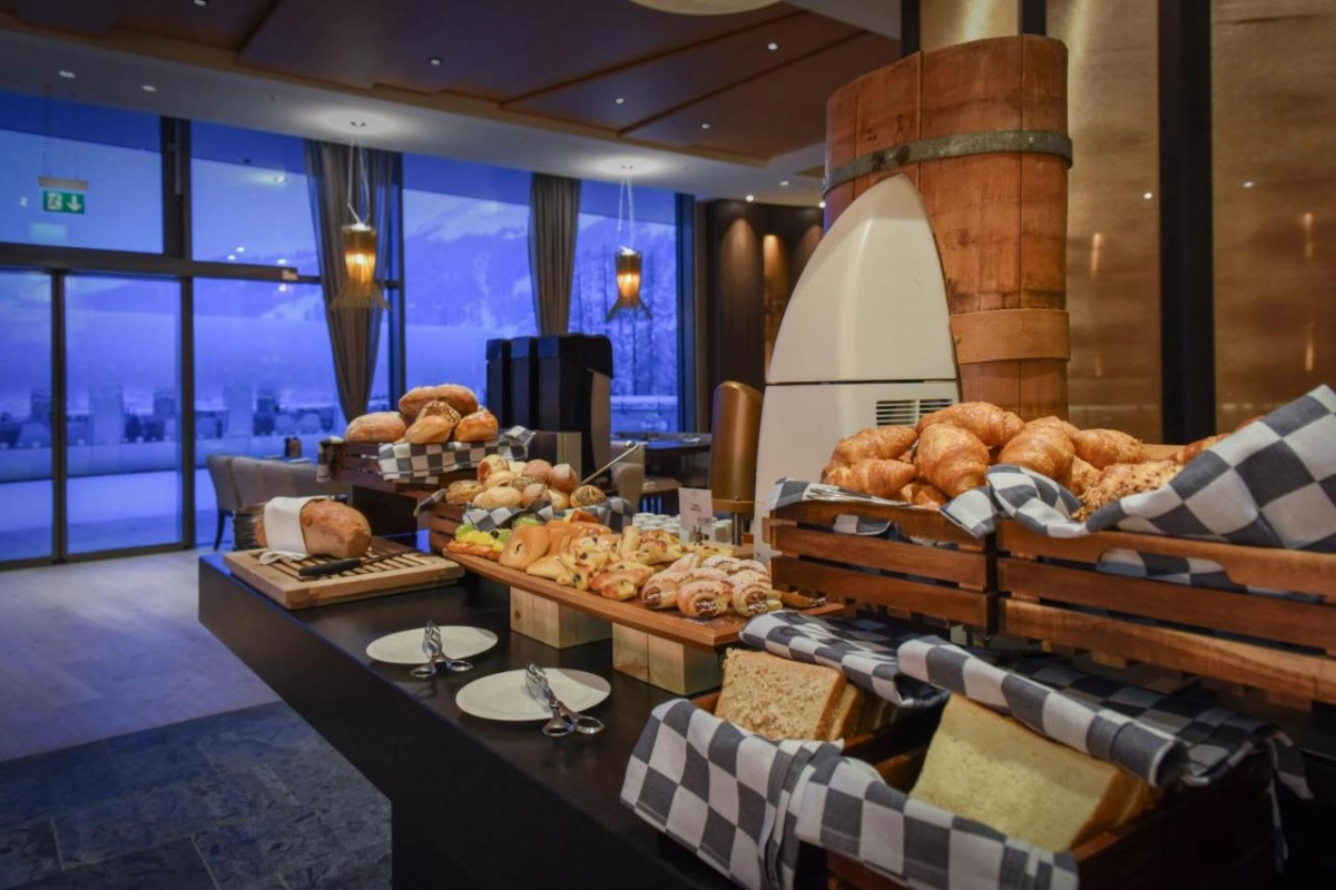 Dining at AlpenGold is a culinary delight across three à-la-carte restaurants, each showcasing distinct flavours. The main restaurant crafts inventive dishes with local Swiss ingredients, from hearty alpine specialties to delicate international fare, served in a refined yet welcoming setting. The second venue offers rustic charm with regional cheeses and charcuterie, while the third elevates fine dining with artfully plated creations paired with curated wines. The cocktail lounge mixes signature drinks and classic spirits, perfect for après-ski gatherings or quiet evenings by the fire. The spa invites rejuvenation with its sauna, steam bath, and tailored massage treatments, while the fitness area keeps guests energized. For outdoor enthusiasts, the hotel provides direct access to skiing, with an on-site ski school, ski-pass services, and equipment rentals, alongside hiking and snowshoeing adventures in the surrounding peaks.