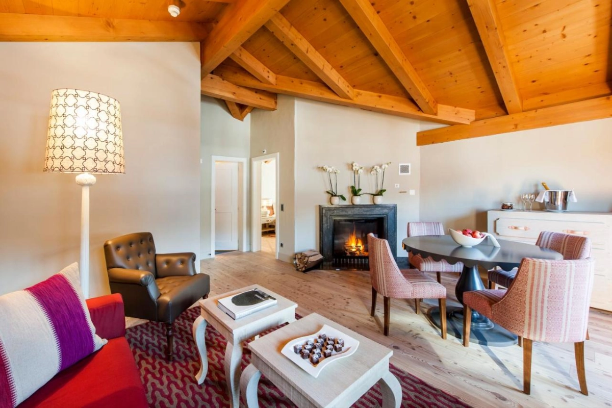 The hotel's 57 rooms and suites are a symphony of sophisticated comfort, blending soft linens, polished wood, and modern accents with views of snow-dusted peaks or the village's charming lanes. Each sanctuary features air-conditioned serenity, plush bathrooms with luxurious toiletries, and thoughtful touches like coffee machines and flat-screen TVs. Select suites boast private balconies, where the alpine air and dramatic mountain silhouettes create moments of quiet wonder, weaving heritage with contemporary allure.