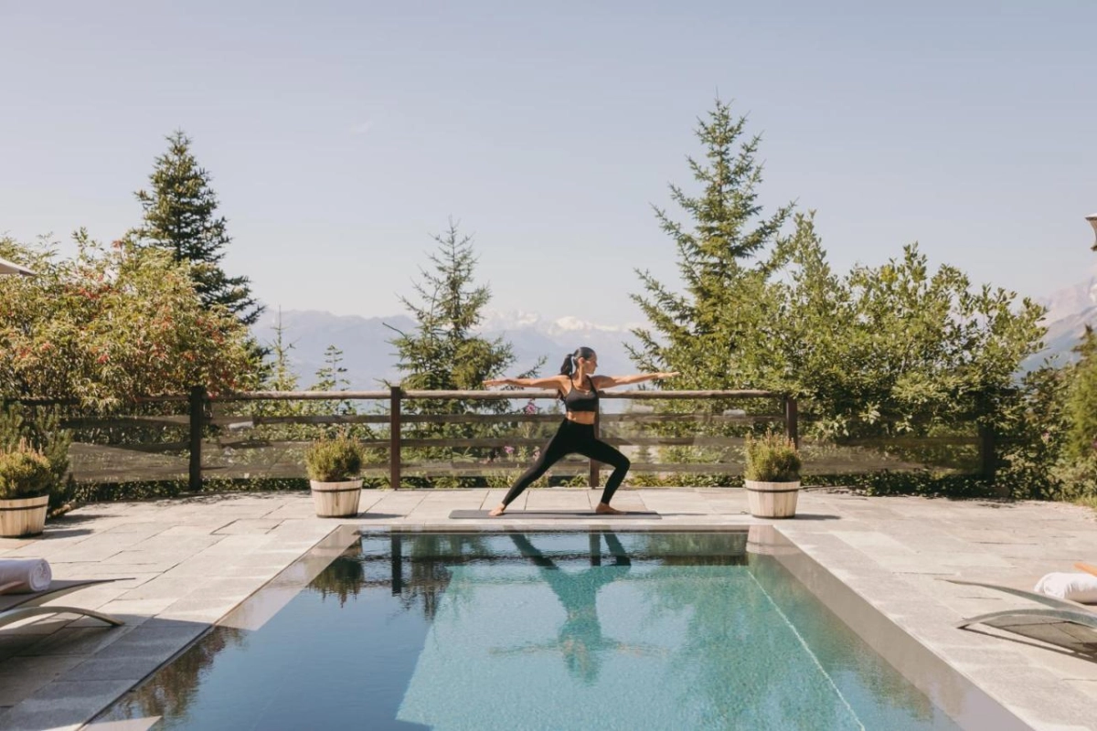 The wellness program at LeCrans is a sanctuary of rejuvenation, where a luminous indoor pool shimmers alongside a steaming hot tub and hammam, each designed to melt away tension. A Finnish sauna and state-of-the-art fitness centre energize guests, while bespoke treatments, from alpine-inspired massages to revitalizing facials, restore balance in serene treatment rooms. The outdoor pool, nestled within a manicured garden, invites summer dips with alpine vistas, and a billiards room adds a playful touch. With direct access to Crans-Montana's ski slopes and nearby cycling trails, the concierge curates bespoke adventures, from private ski lessons to guided hikes through wildflower-strewn valleys.
